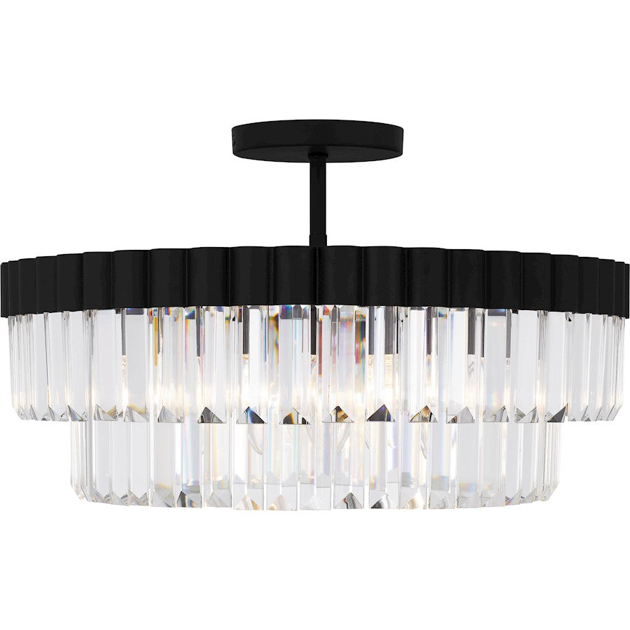 With clear crystal glass and a sleek finish, Starlight adds the perfect touch of elegance to any room. The clear crystal glass shade emits a dazzling glow, highlighted in either brushed nickel or matte black. Available as a semi-flush mount or pendant light, Starlight makes a perfect addition to any luxury or glam living space.