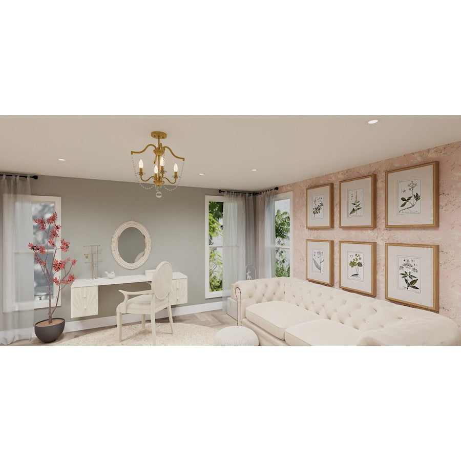 Aged brass and clear crystal glass beads make an elegant pairing in the Sunday collection. Available as a semi-flush mount or mini chandelier, Sunday adds a hint of glamour to any foyer, home office, dining room, or living room. Hang this versatile fixture in a variety of settings for instant luxury.