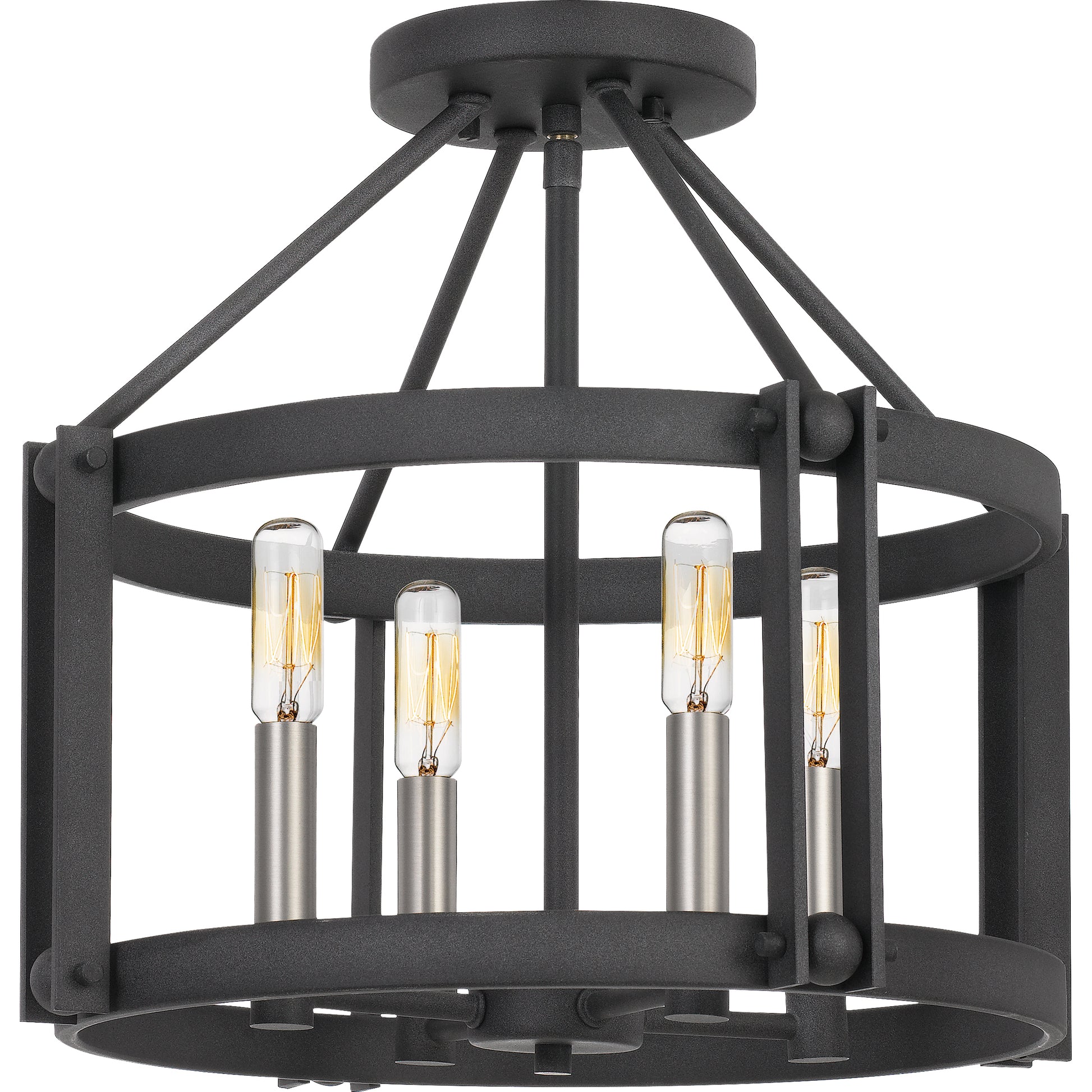 The Victor is a transitional design with a stately openwork frame and dual finish. The sleek brushed nickel candle covers offer the perfect contrast to the mottled black cage. We recommend using vintage filament bulbs for maximum flair.