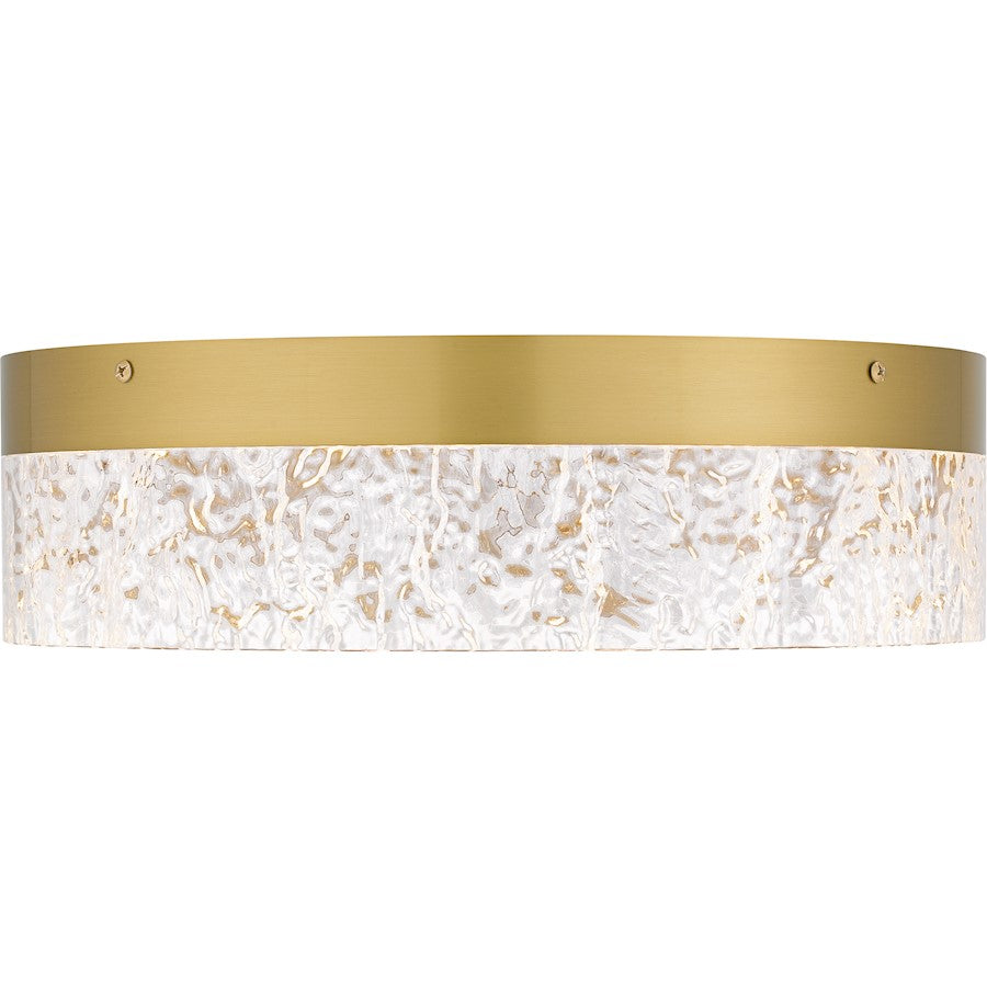 The Vistaria flush mount is simple with a contemporary flourish. The minimalist silhouette features a clear textured acrylic shade and your choice of matte black or brushed gold finish . An integrated LED is included for energy-efficient illumination. Use this versatile design in a range of spaces: Hallways, laundry rooms, entryways, bathrooms, and more.