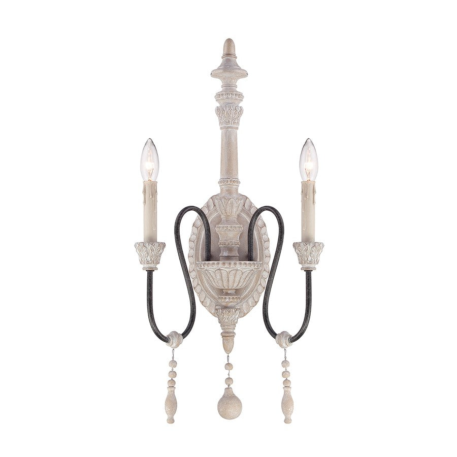 For stylish French Country beauty, look to the Ashland collection from Savoy House. A White Washed Driftwood finish highlights the intricate and elegant detailing while the wood pendalogues are a fun new look at a chandelier tradition.