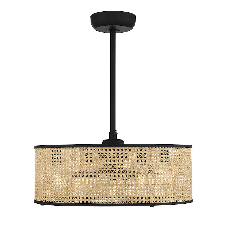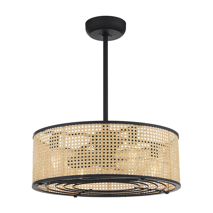 Bring in a tropical breeze with the Savoy House Astoria Fan D'Lier! With its natural cane shade and matte black finish, it’s excellent for adding casual vibes to the home. Let the organic look of Astoria transport you to lush surroundings. Astoria is 12.88" in height and 25" in width. It uses four standard size bulbs of up to 8 watts per bulb. For indoor use only. Comes with 80" of cord.