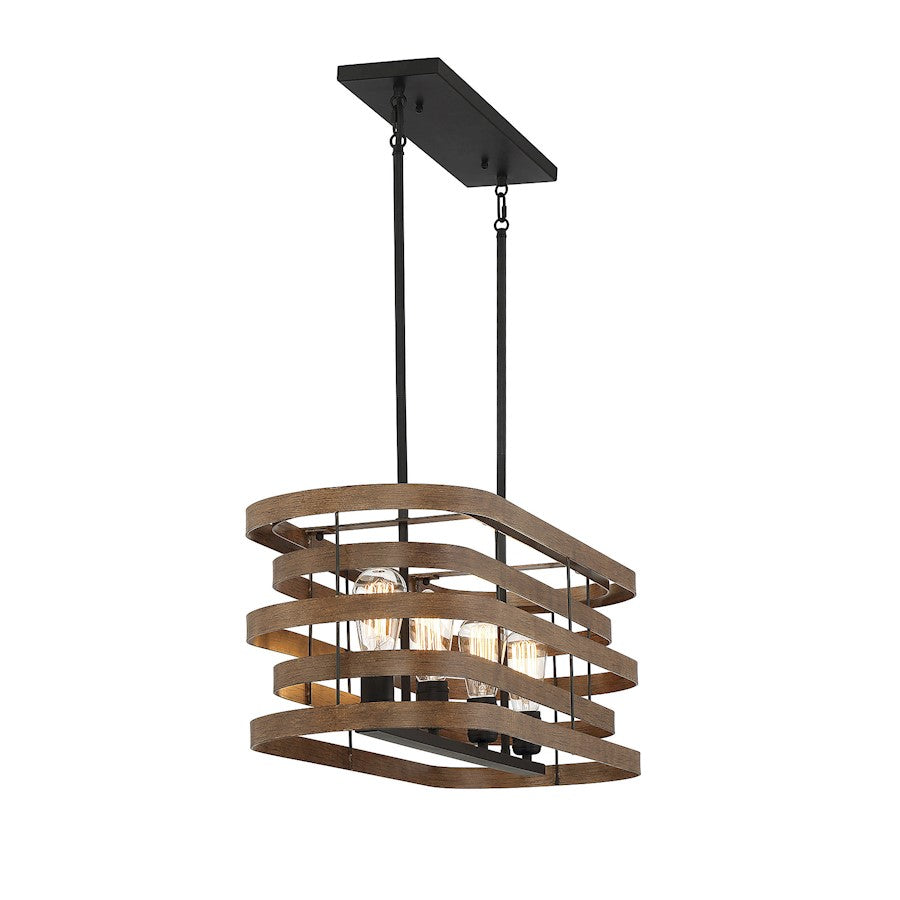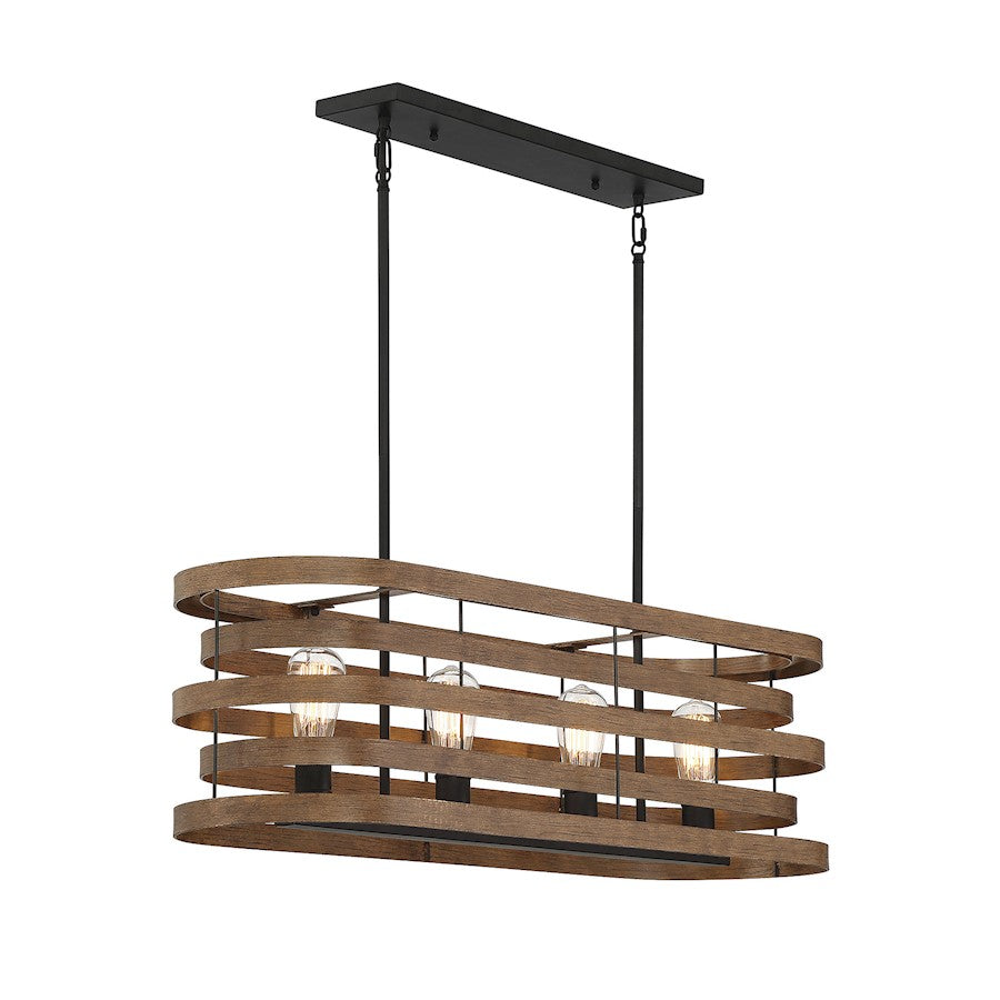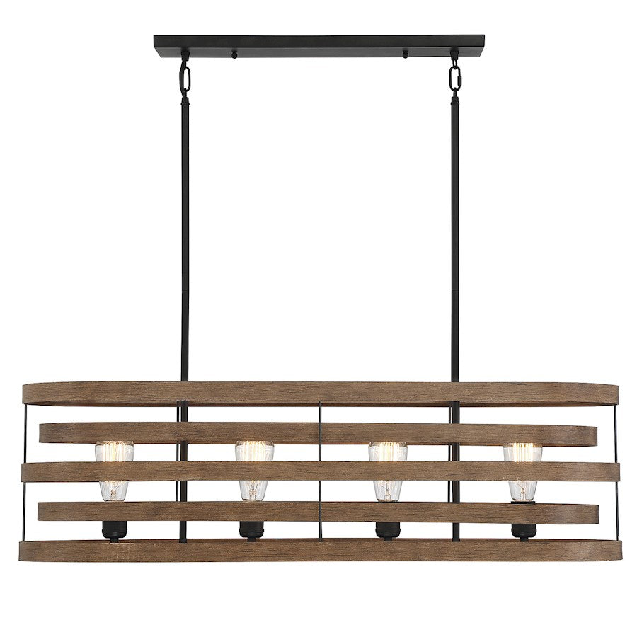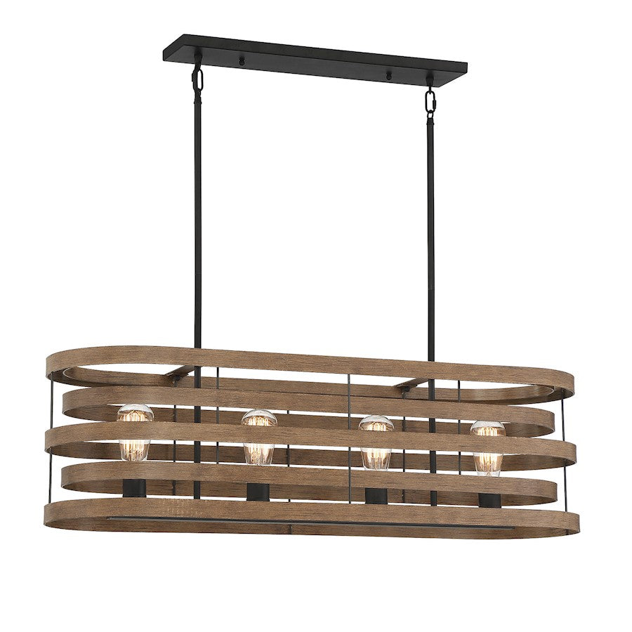 The Blaine collection will enhance rooms with rustic, casual transitional, craftsman-inspired and even Scandinavian aesthetics. Featuring a concentric Natural Walnut veneer shade and black accents, this four-light linear chandelier measures 38" wide and provides ample illumination from four 60-watt standard size bulbs. The adjustable hanging height from 20" to 66" inches adds to the versatility.