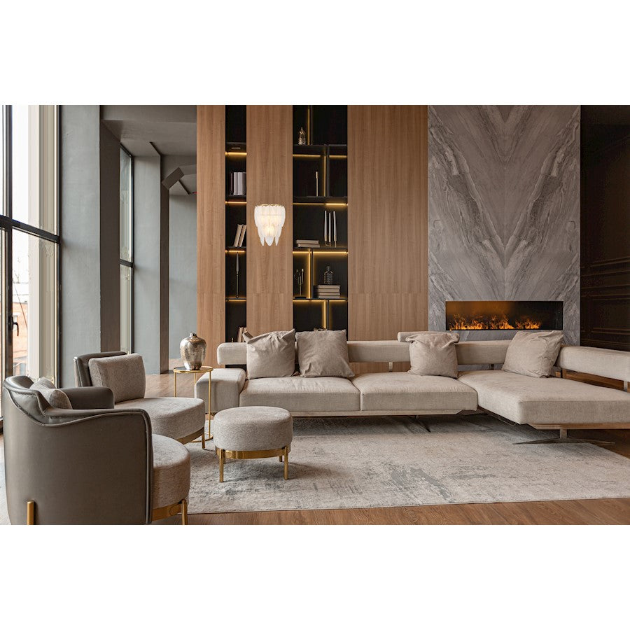 The Savoy House Boa 3-light sconce was designed by Breegan Jane, an award-winning interior designer and TV host based in Los Angeles. Accordingly, Boa is infused with luxurious Old Hollywood glamour. Frosted glass feathers cascade down in overlapping rows, creating a look that is sure to turn heads, and the Warm Brass finish is a perfect example of how Breegan uses metallics to elevate her designs. Boa is 14" in height, 10.5" in width and extends 6" from the wall. It uses three candelabra size bulbs of up to 60 watts per bulb. Bulbs are not included. This sconce is damp area rated.