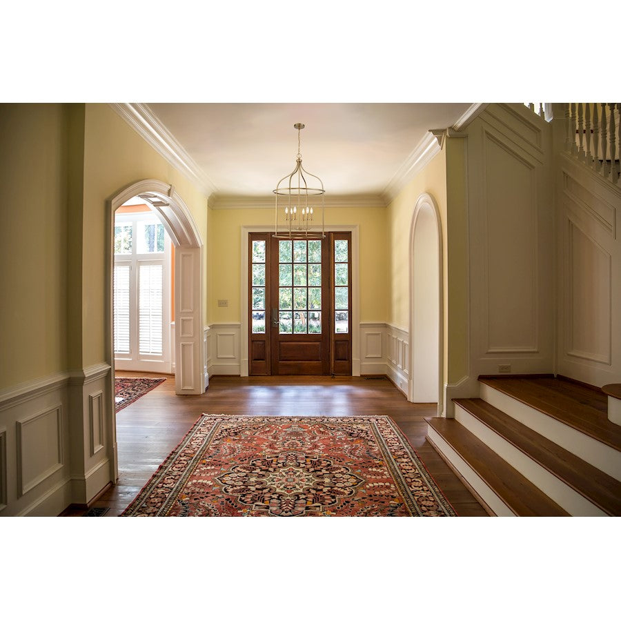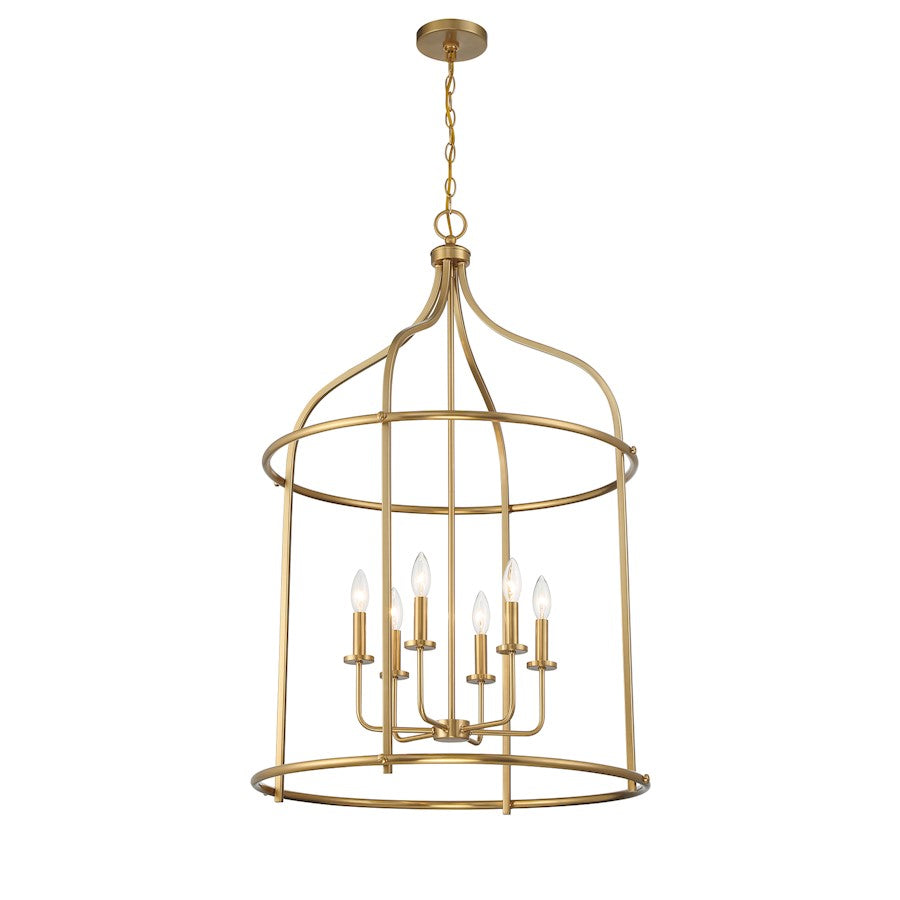 Brighten up boldly with the Savoy House Brookstone 6-light lantern. It has a simply elegant open lantern style and a lovely Warm Brass finish. At 40" in height and 26" in width, it is a great way to illuminate a large room, like a grand foyer. Brookstone uses six candelabra size bulbs of up to 60 watts per bulb. Bulbs not included.