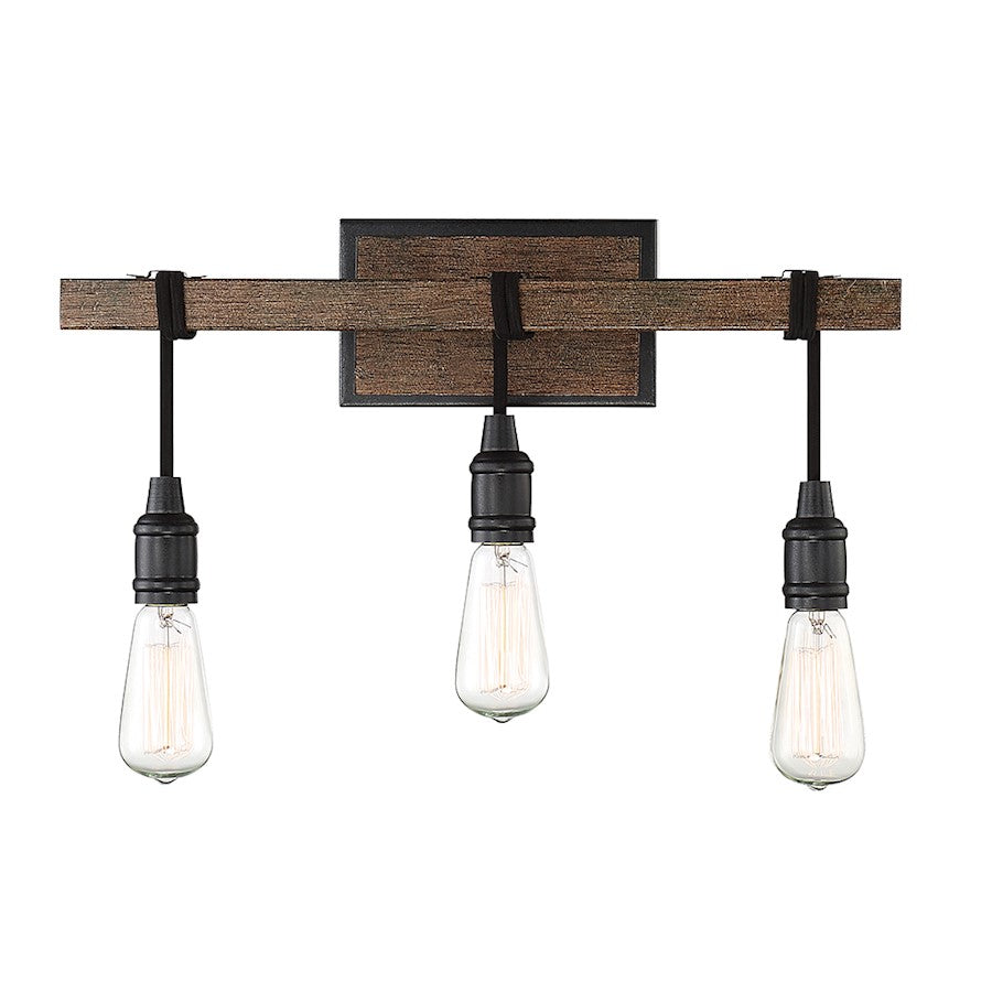 Simple, rustic style is yours with the unique Savoy House Burgess 3-light bath bar. It features little more than bare bulbs suspended from cords wrapped around the bar-shaped structure, finished in Durango, but this minimal look makes a big impact! Bath bar lights are a classic choice for illuminating vanity mirrors in bathrooms big and small, though this fixture could be used in other wall-mounted applications as well. Since the bulbs are exposed, try using stylized bulbs (not included) like tubular shape or Edison style for a different look! The Durango finish pairs nicely with black or bronze hardware, but also can mix with hardware in other finishes. Rustic, industrial and modern farmhouse style spaces are ideal choices for Burgess. When you choose a Savoy House lighting fixture, you can be certain you’ve selected a piece that will withstand the test of time.