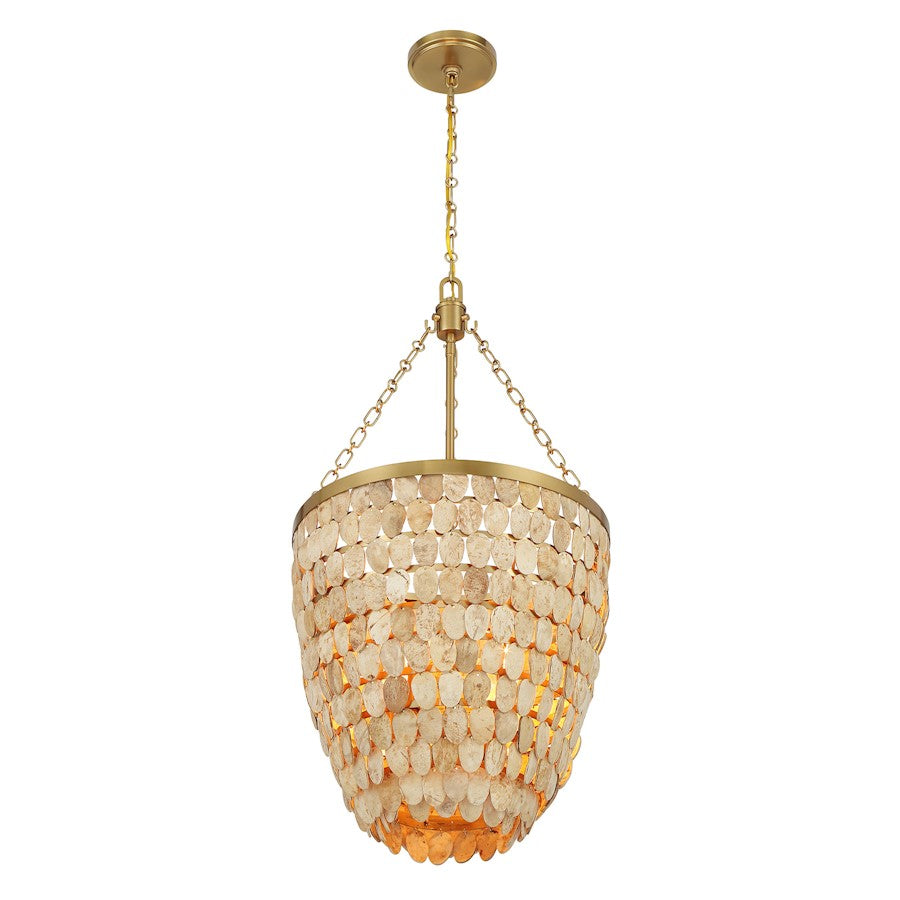 The Savoy House Catalan 4-light pendant was designed by award-winning interior designer and TV host Breegan Jane. It draws inspiration from the Mediterranean, a part of the world that Breegan treasures. A combination of fabulous French luxury and carefree island life culminates in this familiar yet fresh profile with a regal Warm Brass finish complemented by the organic appeal of the tiered coconut shells. Catalan is 31" in height and 16" in width. It uses four candelabra size bulbs of up to 60 watts per bulb. Bulbs not included. Comes with 120" of chain.