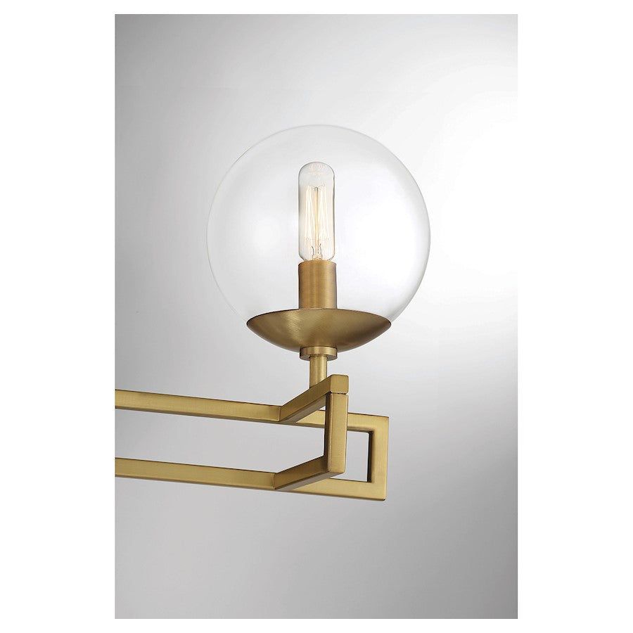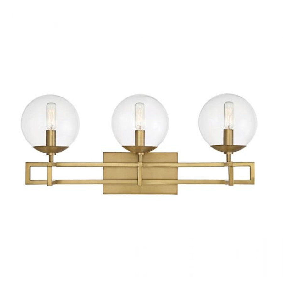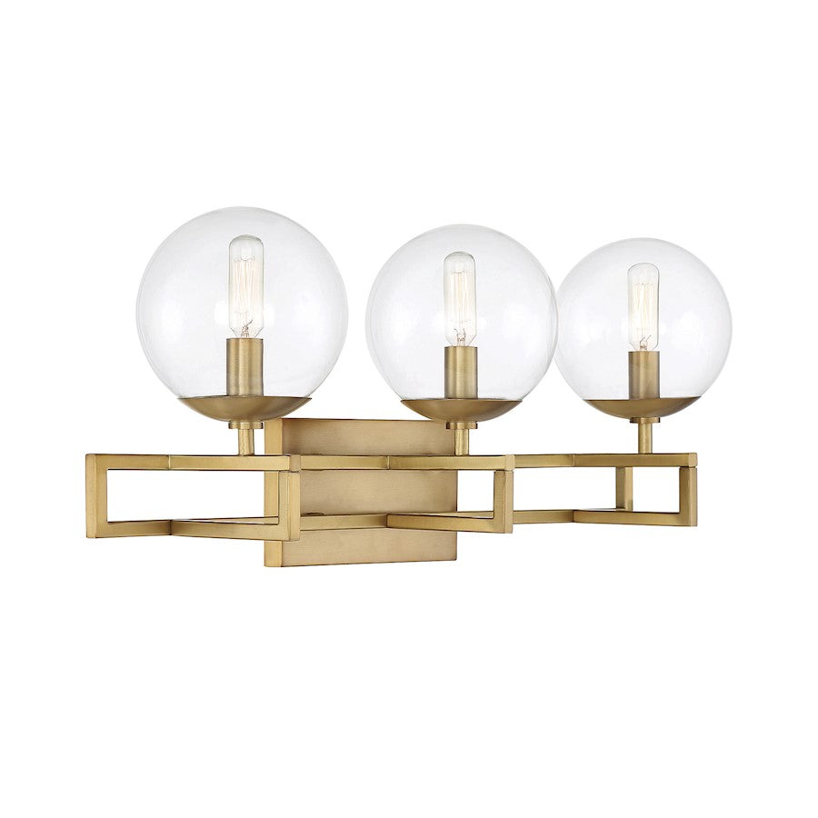 There’s a certain beauty to be found in the idea of an intersection, the place where everything comes together. The Savoy House Crosby 3-light bath vanity light showcases that beauty with lights nestled in clear glass orbs and placed strategically on intersecting arms. Finished in warm brass. Crosby is 10.5" in height, 24" in width and extends 7.5" from the wall. It uses three candelabra size bulbs of up to 60 watts per bulb. Damp area rated.