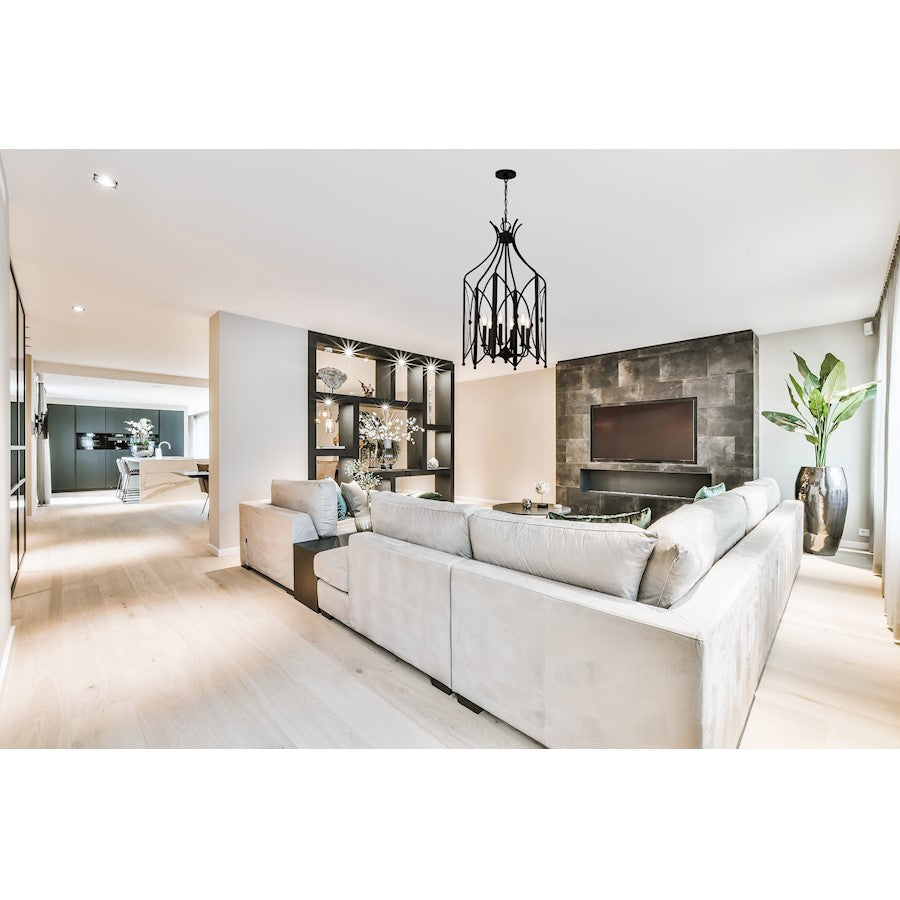 Elegant and dramatic, the Savoy House Enclave 6-light lantern offers a strikingly beautiful lighting look. It is decorated with panes of clear glass in curving frames that recall the look of leaves and seem to multiply the lights within. The Black Tourmaline finish adds a bold touch of luxury. Enclave is 35" in height and 21" in width. It uses six candelabra size bulbs of up to 60 watts per bulb. Bulbs not included.