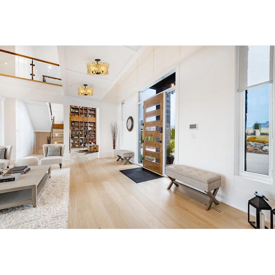 This Savoy House Ensley 4-light ceiling semi-flush mount wears a crown of feather-like decorations with a beautifully textured True Gold finish that recalls gold leaf. This True Gold contrasts nicely with the structure, which is finished in Matte Black, to effortlessly add bright and stylish lighting to any room. Ensley is 13" in height and 20" in width. Uses four candelabra size bulbs of up to 60 watts per bulb. Bulbs not included.