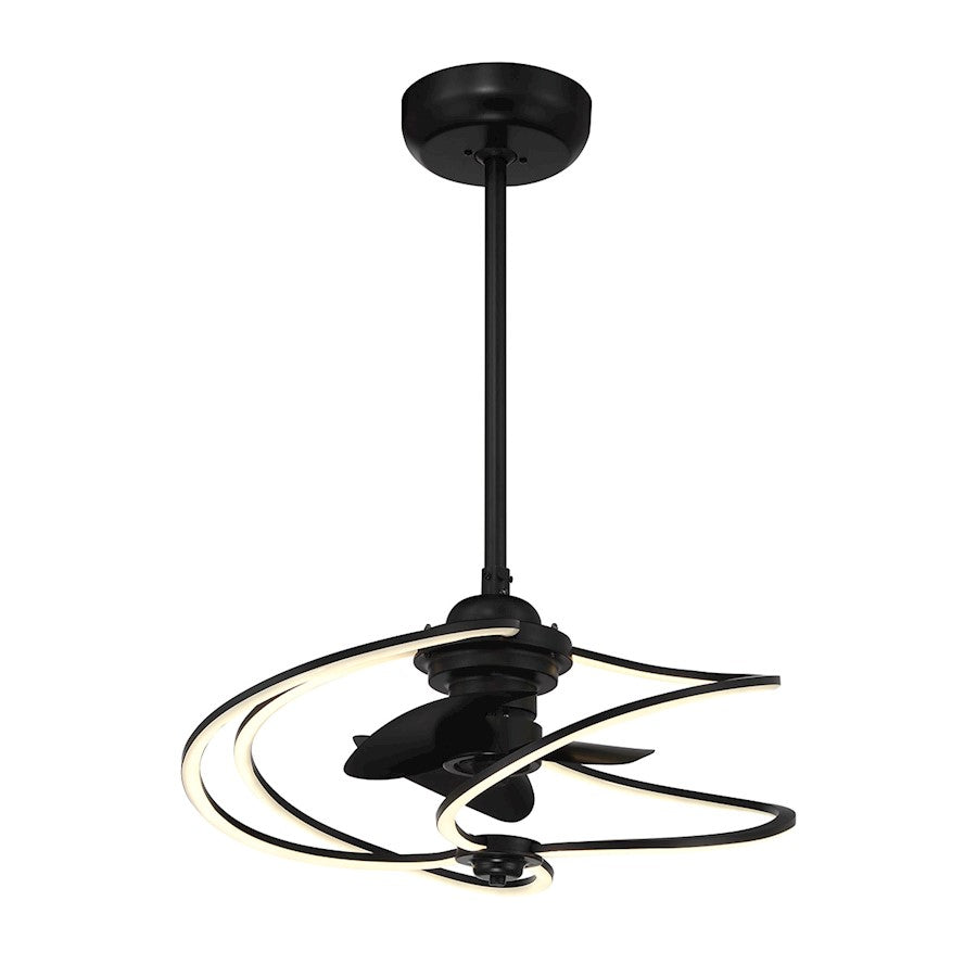 Add a hint of magic to your home with the Savoy House Hydra Fan D'Lier, which blends the chandelier and the ceiling fan into one fabulously fashionable fixture. Its swirling bands of integrated LED light encircle the fan, which is finished in Matte Black. Hydra uses an efficient DC motor and has a handheld remote control for extra convenience. It is 24" in width and 11.5" in height. Comes with a 4" downrod and an 18" downrod. Fan D'Liers are a Savoy House exclusive. These custom designs are inspired by high-end designer styles and take top trends to a whole new level.