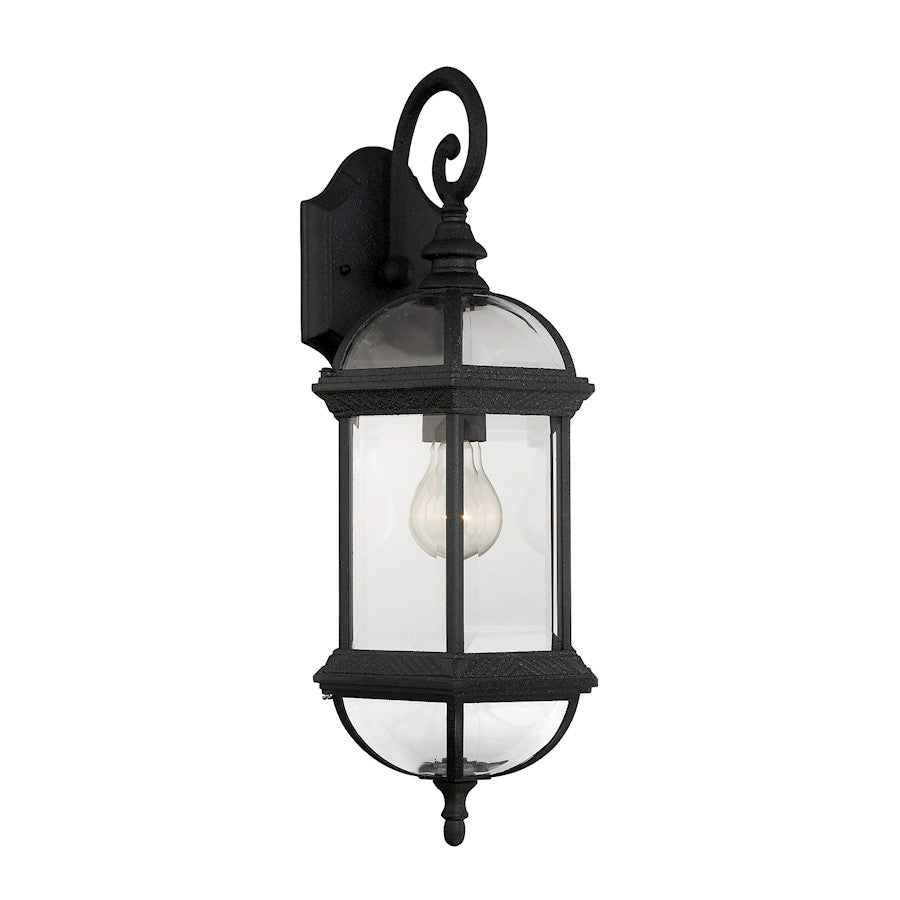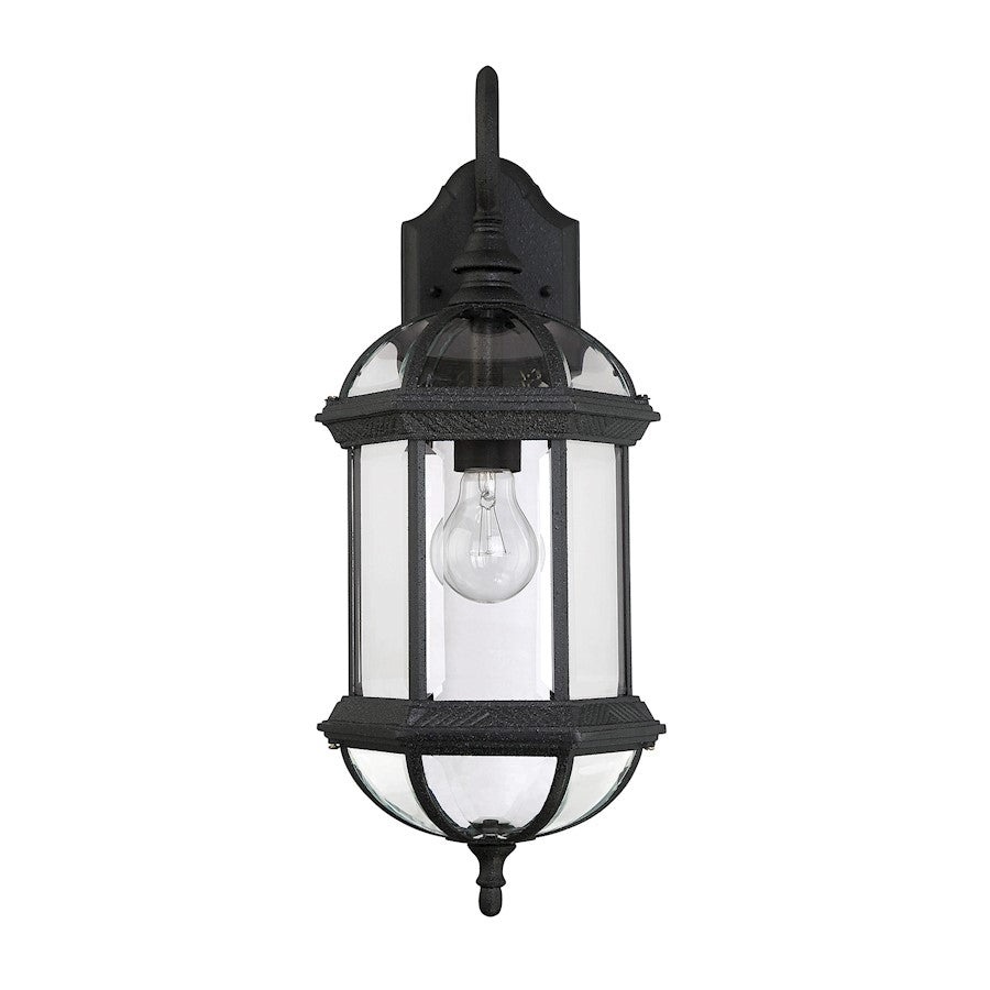 Classic exterior fixture available in two finishes - Textured black and Rustic bronze with Clear Beveled glass.