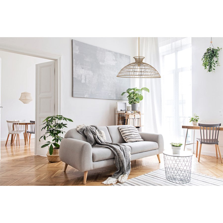 Savoy House brings the natural beauty of rattan lighting to the great outdoors with the Lanai 1-light pendant. A basket-like rattan resin shade holds a light inside a shade of clear seeded glass. Together, these elements create touchable, eye-catching texture while the Warm Brass finish adds richness. Lanai is 32" in width and has an adjustable height ranging from 15" to 69". Comes with four 12" downrods and one 6" downrod. Uses one standard size bulb of up to 60 watts. The bulb is not included. Lanai is damp area rated and can also be used indoors.