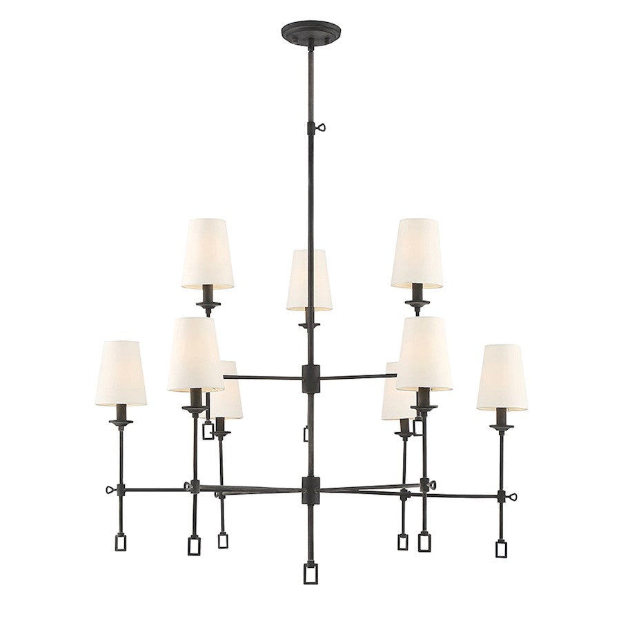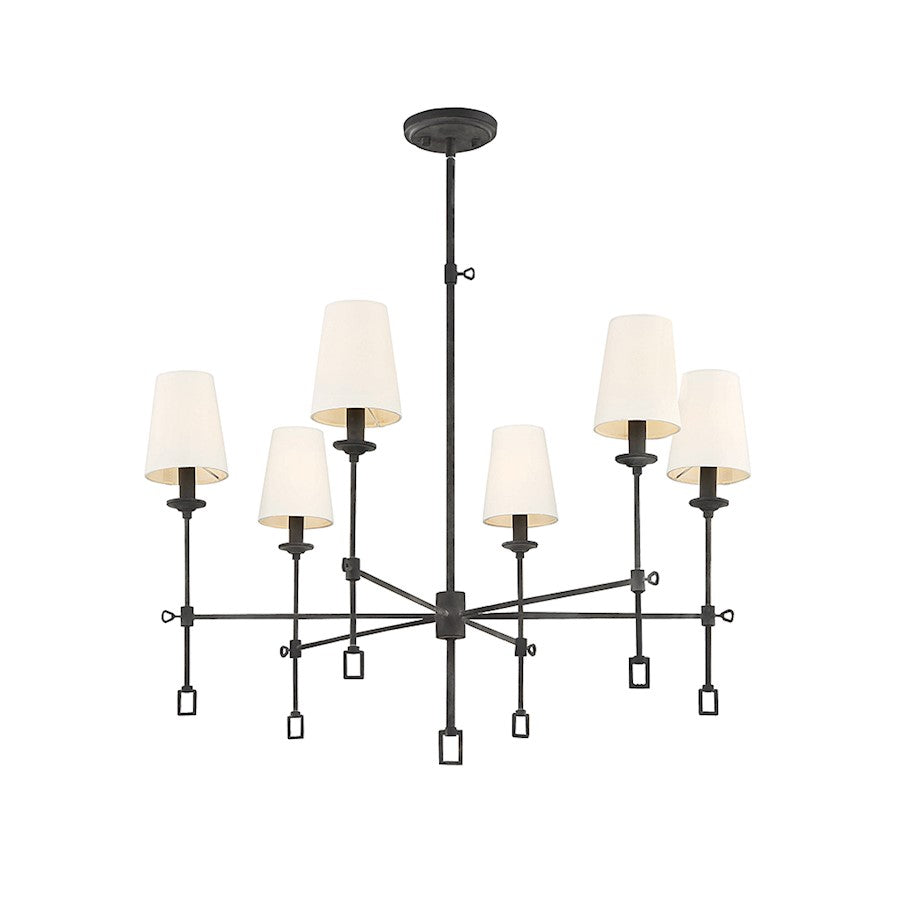 This Savoy House Lorainne 4, 6 or 9-light chandelier features a sleek, slim design with square details, fabric shades and an oxidized black finish.