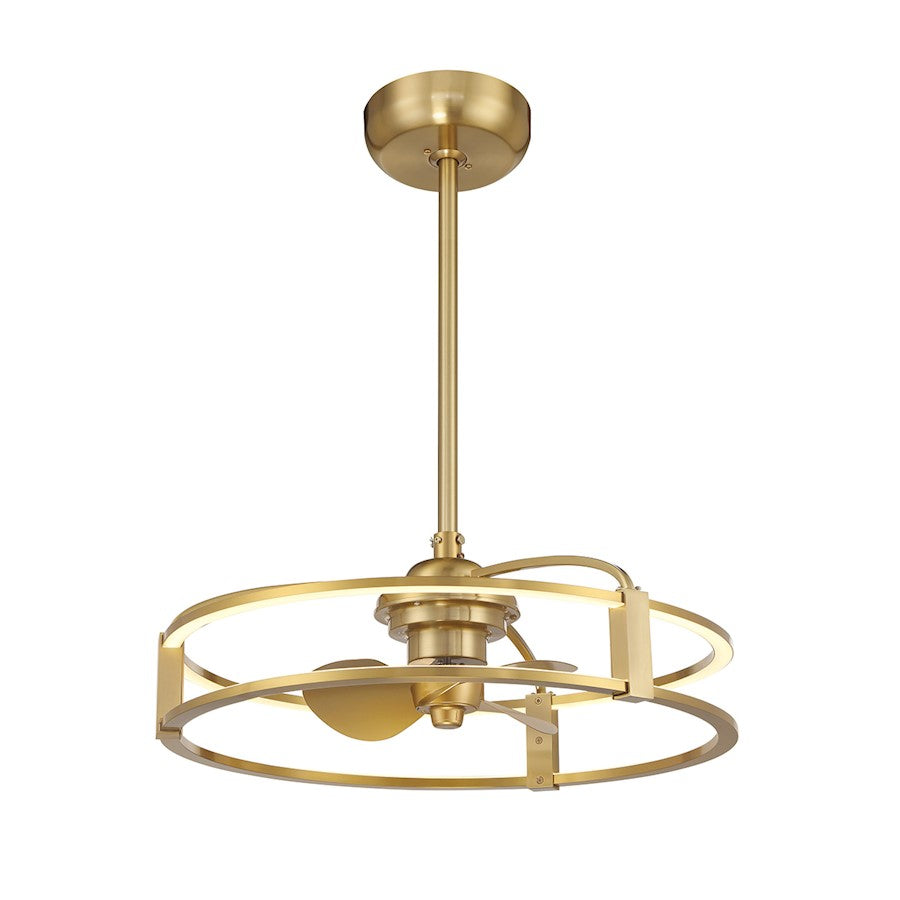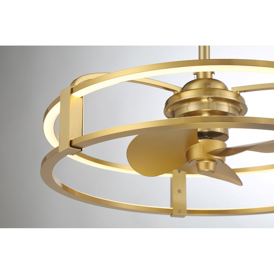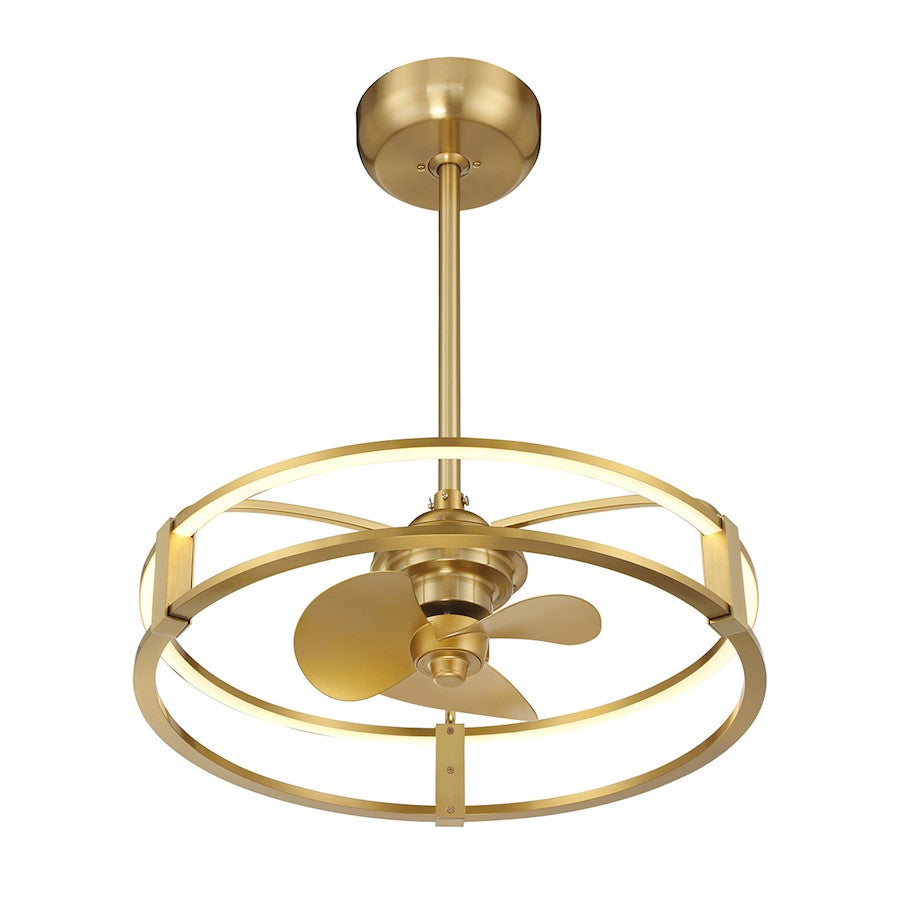Create a unique glow and a more comfortable space with the Savoy House Lyria Fan D'Lier! A halo of clear seeded acrylic is illuminated by integrated LED and framed by a structure finished in super-chic Warm Brass. Lyria uses an efficient DC motor and has a handheld remote control for extra convenience. It is 24" in width and 10" in height. Comes with a 4" downrod and an 18" downrod. Fan D'Liers are a Savoy House exclusive. These custom designs are inspired by high-end designer styles and take top trends to a whole new level.