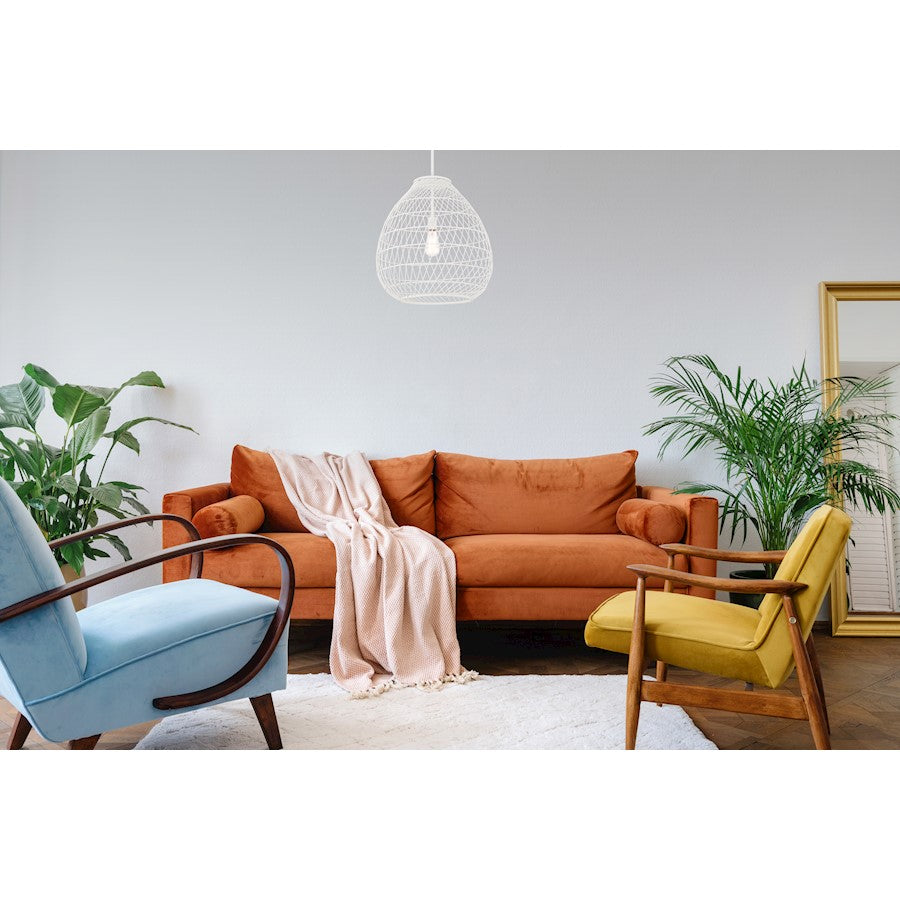 Savoy House brings the natural beauty of rattan lighting to the great outdoors with the Maya 1-light pendant. A basket-like white resin wicker shade creates touchable, eye-catching texture and holds an exposed light bulb. Bisque White finish. Maya is 20" in width and has an adjustable height ranging from 21.5" to 75.5". Comes with four 12" downrods and one 6" downrod. Uses one standard size bulb of up to 60 watts. The bulb is not included. Maya is damp area rated and can also be used indoors.