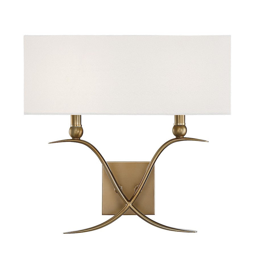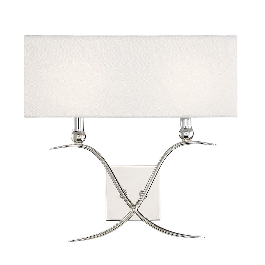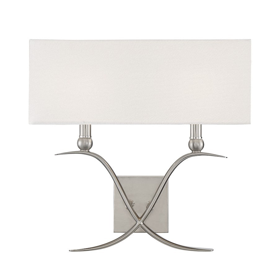 This Savoy House Payton 2-light sconce offers effortless elegance to brighten any space. Thin, pointed arms intersect and are paired with a crisp white linen shade that will provide comfortable, useful illumination. Finished in polished nickel, warm brass, classic bronze or satin nickel.