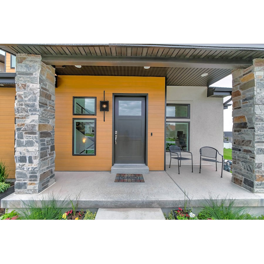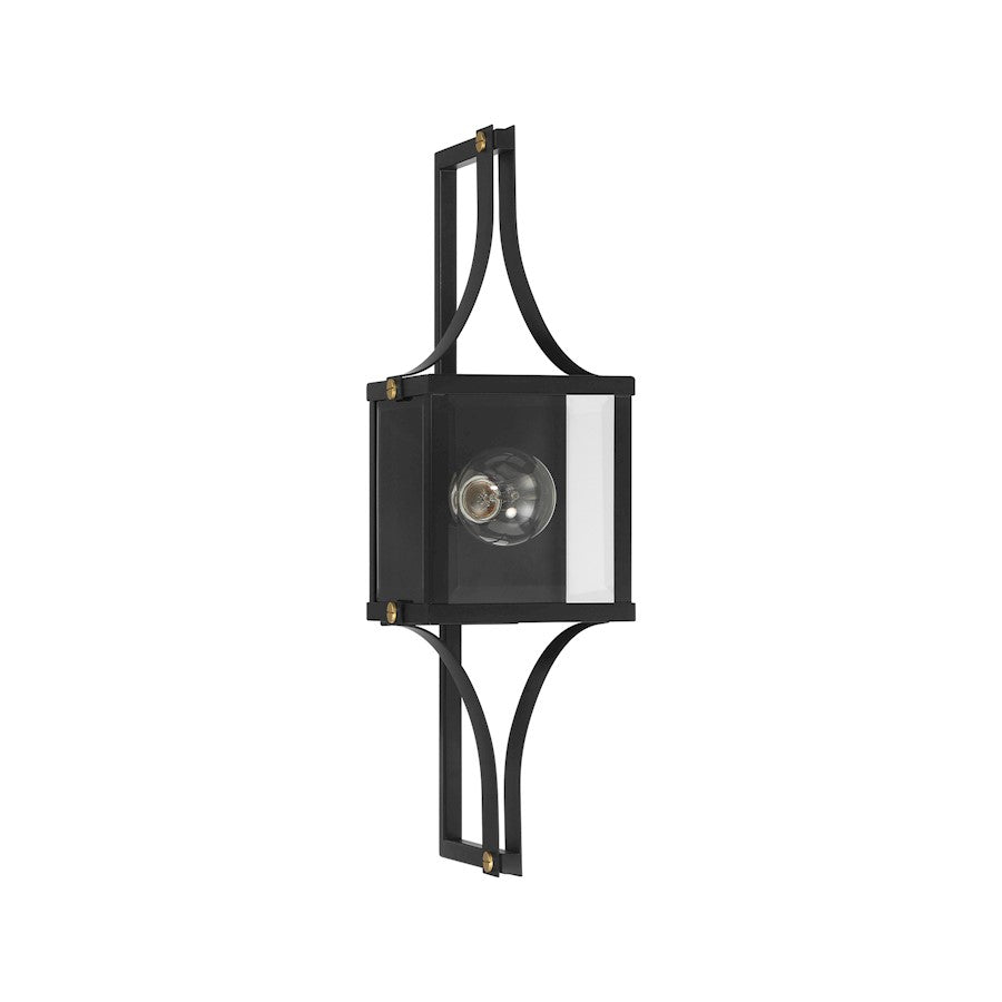 Make your outdoor lighting super fashionable with the Savoy House Raeburn 1-light outdoor wall lantern. A central cube of beveled clear glass is surrounded by a boldly structured frame finished in Matte Black and adorned with thoughtful detailing in Weathered Brushed Brass. Raeburn is 23" in height, 7" in width and extends 9" from the wall. Uses one standard size bulb of up to 60 watts. The bulb is not included. Wet area rated.