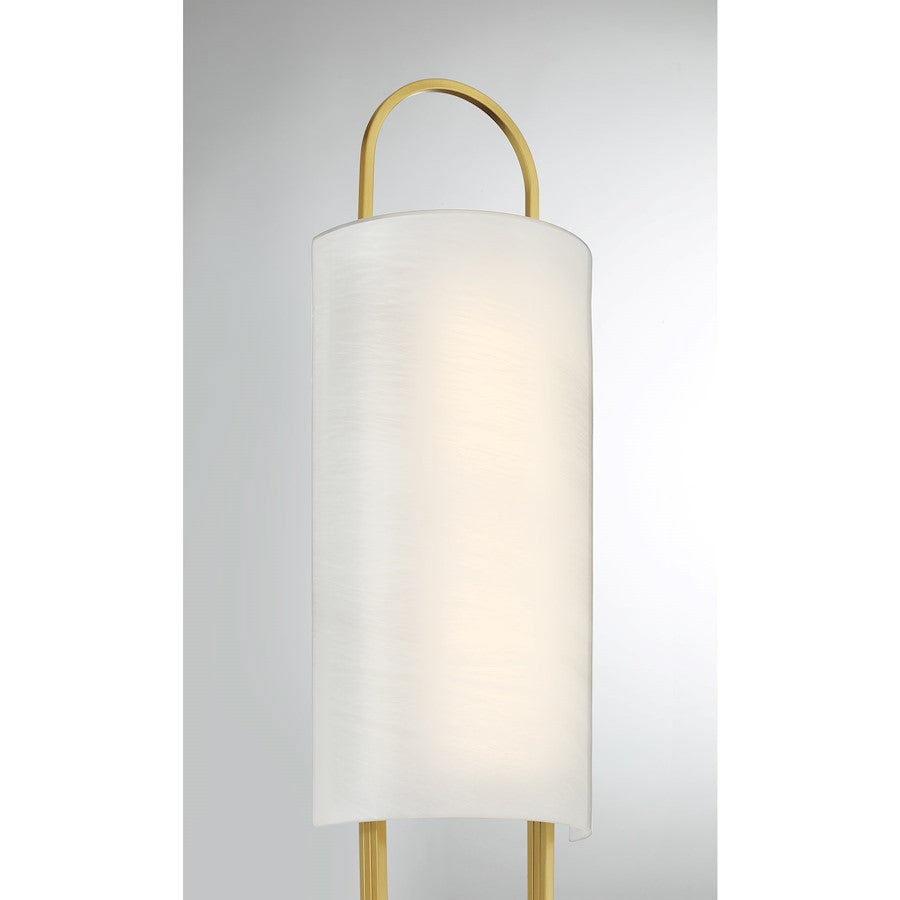 Sleek and elegant, the Savoy House Tartine sconce is a true lighting treat that is perfectly suited for any space! Its jewelry-like shape showcases a shade of stunning, swirling strie glass and is finished in timeless Warm Brass. Tartine is 30" in height, 6.25" in width and extends 3.13" from the wall. Uses an integrated LED light source. This sconce is damp area rated.