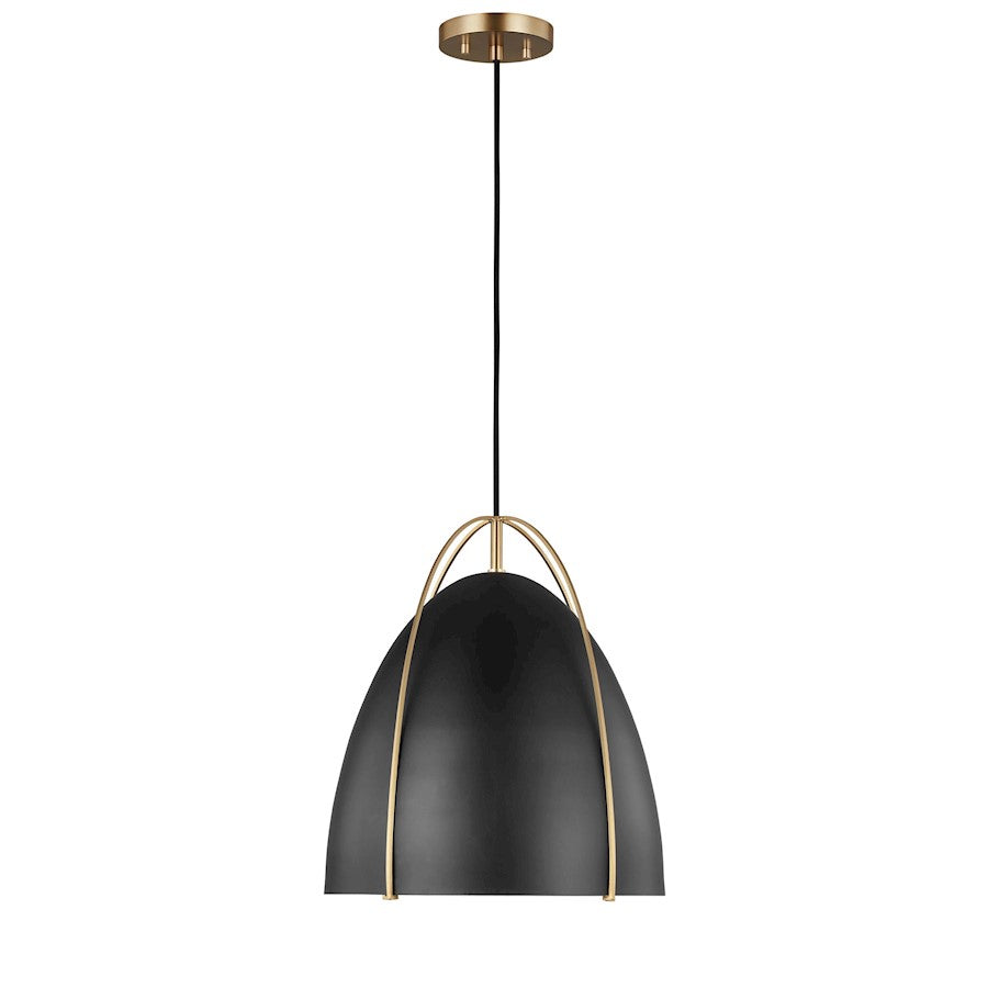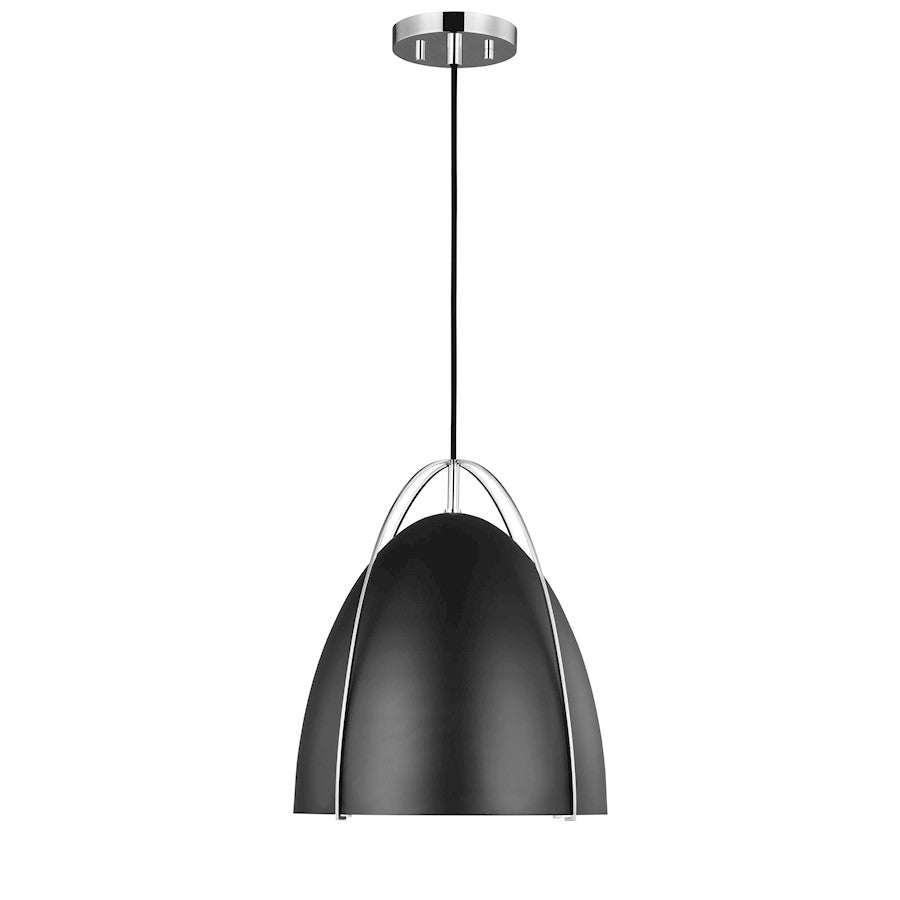 The Sea Gull Collection Norman one light indoor pendant in chrome or satin bronze is a refined touch on an industrial design, these metal pendants feature a dome shade accented with a Bronze or Chrome arms. Industrial metal shade visually suspended by a delicate contrasting exoskeleton frame. Named after Sir Norman Foster, the British architect behind the dome of the Reichstag and the modern addition to the London Museum.
