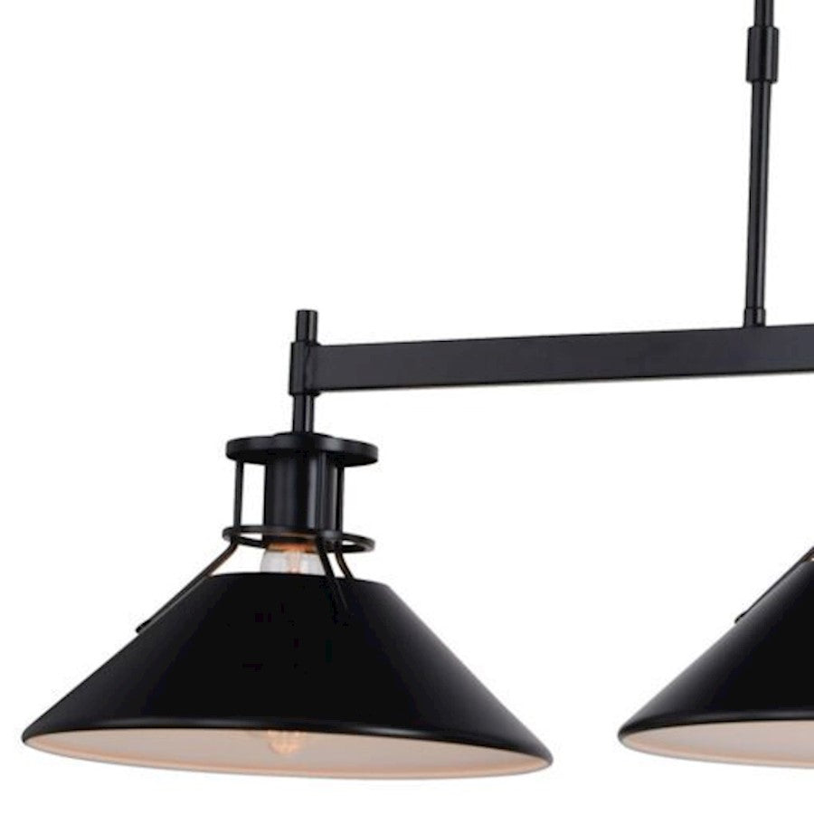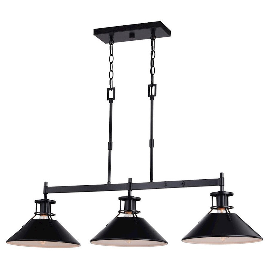 The Canton collection speaks loudly to industrial and farmhouse charm. The black metal shades taper outward to generate the utmost light below. A small cage-like structure allows light to peek out above the shade balancing the show of light. Add this 3-light linear chandelier to any kitchen or living space for that edgy touch of flair.