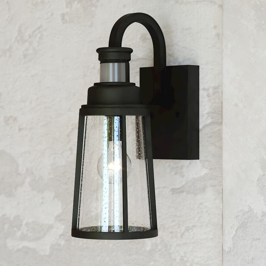 This attractive outdoor light from the Coventry collection will add a touch of sophistication to your home’s exterior. With an oil rubbed bronze finish and clear seeded glass, this industrial inspired transitional piece provides a great mix of style and functionality. Ideal for your covered porch, entryway, garage, or any other area of your home. Dualux patented dual-level security lighting is outdoor lighting made smarter—brighter light at dusk, dimmer at night, brightening instantly when it detects motion. Designed to reliably and effortlessly enhance your home’s beauty, security and efficiency from dusk to dawn with its built in motion sensor and photocell. This fixture works with any dimmable incandescent or halogen bulb and many dimmable LED bulb models.