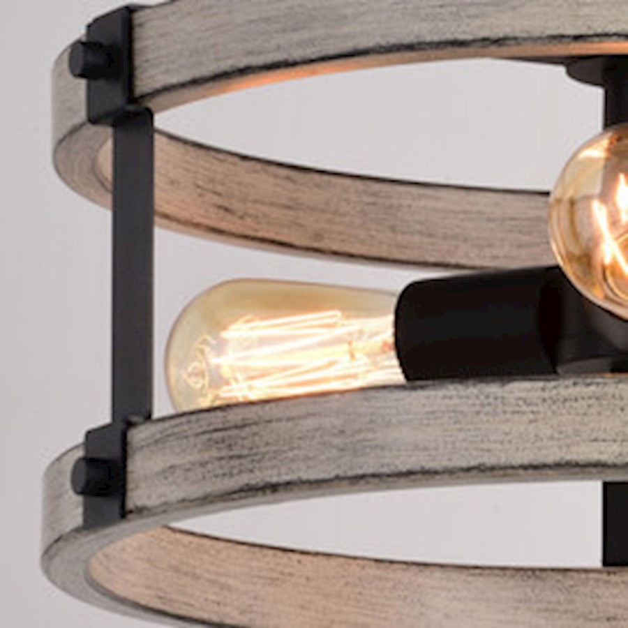 Add farmhouse style throughout your home with the Danvers collection. A pair of rings supported by riveted metal straps form an open drum shape. The textured black and weathered gray finish combine to offer a striking contrast. Ideal for use in any entryway, hallway, kitchen, or bedroom.