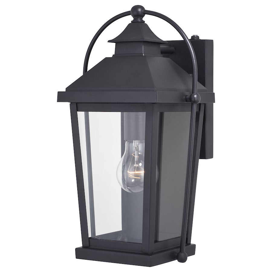 The colonial inspired Lexington collection is steeped in traditional charm. A textured black finish coupled with tapered, clear seeded glass panels are further enhanced with a curved metal lantern handle creating a carriage house lantern look. Combine that with vintage Edison style filament bulbs to complete the look. This outdoor wall light is ideal for your porch, entryway, garage, or any other area of your home.