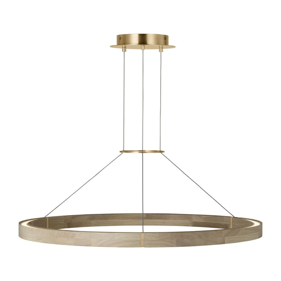 Circles of different sizes and thicknesses take center stage with the simplicity of the Ashok chandelier by Sean Lavin. Featuring a solid wood ring with brass inlay details, the fixture also has an optional collar ring. The minimalist ring chandelier will complement modern decor and can illuminate living and dining rooms, as well as entryways.