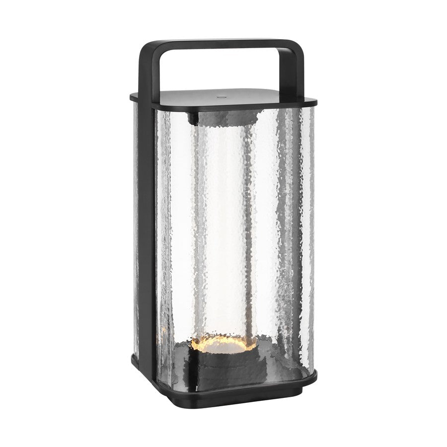 A modern interpretation of classic lantern lamps, the Flacara table lamp by Kelly Wearstler showcases artisanal textured glass inspired by Murano craftsmanship. The lamp is rechargeable and portable, featuring a 3-way flush touch button and handle at the top. The versatile light is ideal for a variety of spaces, both indoor and outdoor, with no need to worry about proximity to an outlet. Available in modern finishes. A USB C to C cable allows Tawa to recharge within 5 hours with a maximum battery life of 12-14 hours. Wall charger included.