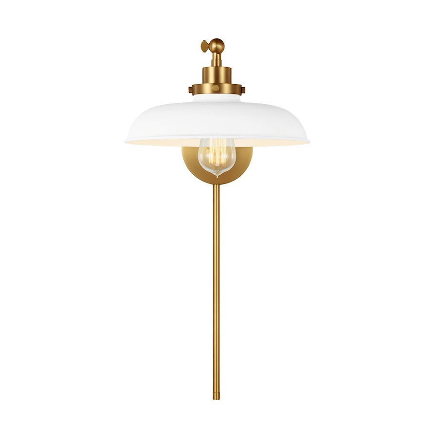 - The simple industrial-inspired Wellfleet wide single arm sconce features a metal wide shade that will tie into a number of design aesthetics
