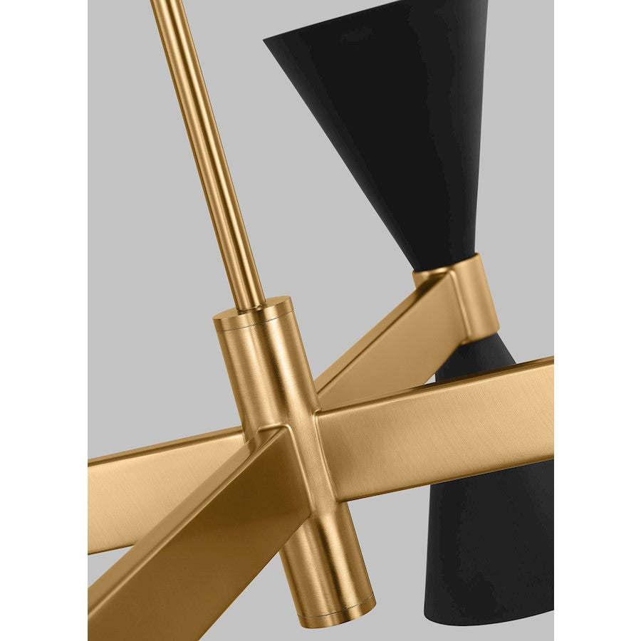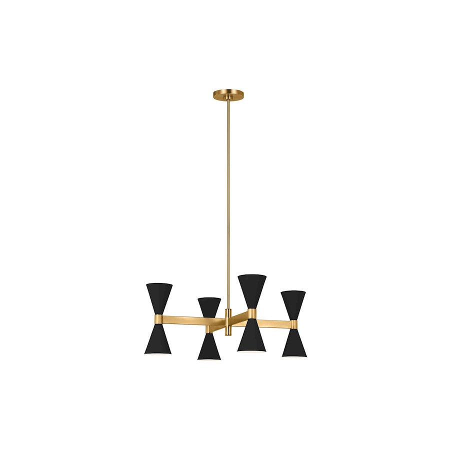The Albertine chandelier by AERIN for Visual Comfort Studio Collection emits ample light above and below from eight conical lights on a crossed frame. This sophisticated piece provides a strong focal point in a large room and is a versatile style that works in both traditional and contemporary interiors. Ideal for a living room or above a dining table.Maximum Height: 64.5"