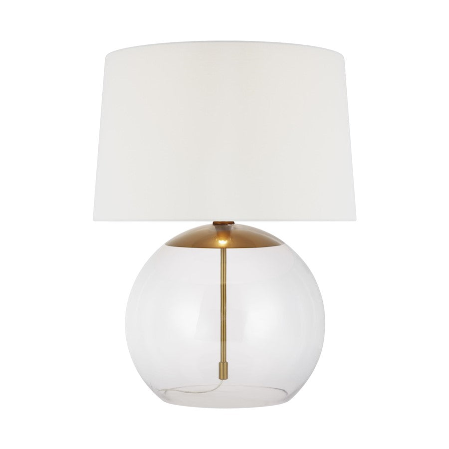 The Atlantic series from Chapman & Myers for Visual Comfort Studio Collection features globe and conical Clear Glass pendants paired with rich Burnished Brass and pure Polished Nickel hardware; these work well singularly or in multiples to elevate any room. The lamping suspends from the center, and appears floating within the Clear Glass shade. Coordinating table lamps feature white linen shades and lend a bright, cozy ambiance to any space.