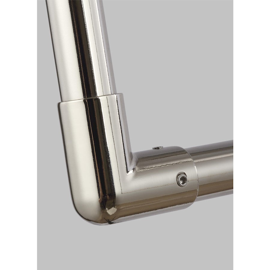 Chapman & Myers designed this modern series with sculptural sensibility, crafted of steel with white candle holders to complete the design. Bayview is available in Aged Iron or Polished Nickel finish and the assortment includes: Medium, large and linear chandeliers, left and right sconces and a single sconce. Perfect for a dining area. Maximum Height: 100.38"