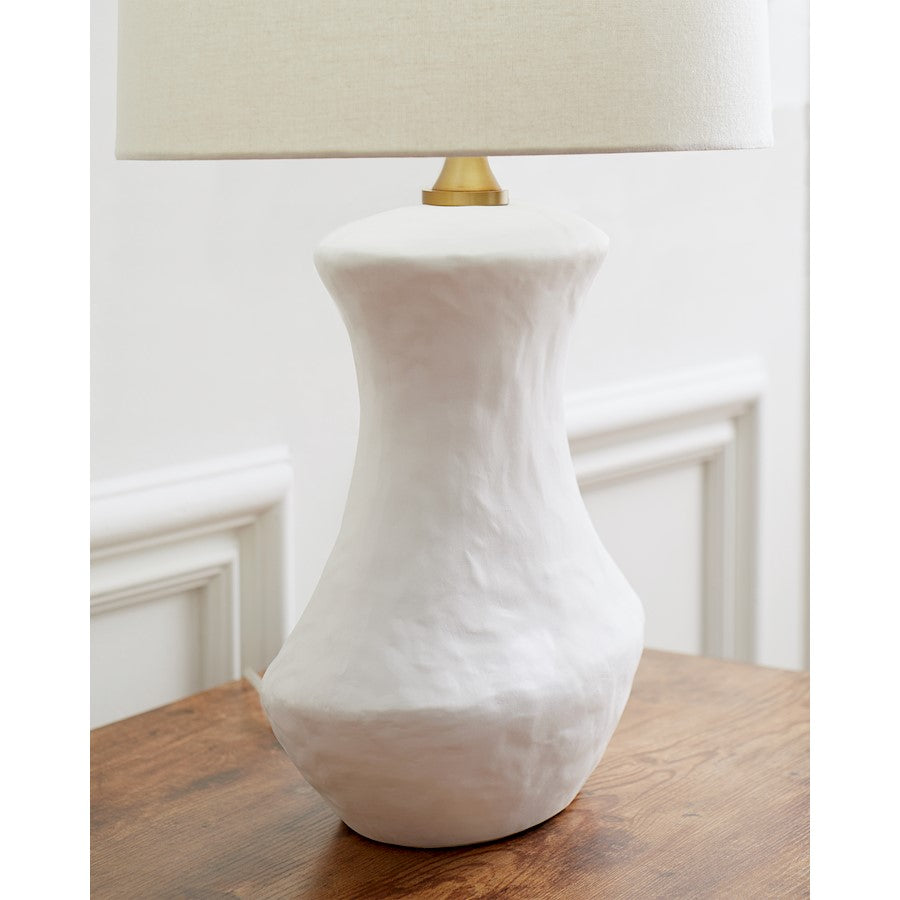 Hand crafted in ceramic the Bone one light table lamp by Hable has a unique shaped base and a black or white finish, making the Bone table lamp an iconic design. Its crisp white shade and brass hardware perfectly accent the delicately detailed art work. Bone offers an enduring presentation of the modern form that will competently revitalize your decor space. A white linen shade caps this piece off with an understated style perfect for ensembles from traditional to contemporary.
