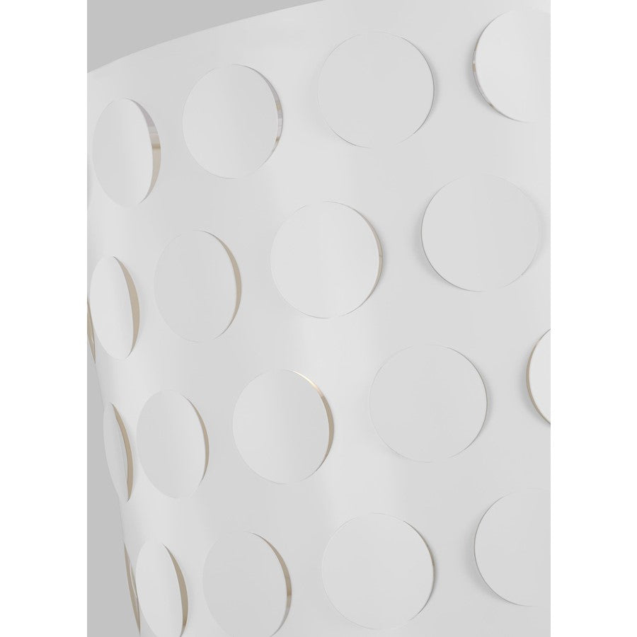 Dots are iconic to the kate spade brand—a simple and playful graphic motif. Dottie takes an iconic kate spade dot motif and cuts it into metal—creating a playful ambient light effect. A classic metal drum shade with an extra twist of perforated pattern. Use this fixture in place of any classic drum shade application, above a dining table, in a nook, or above an island. Maximum Height: 78.62"