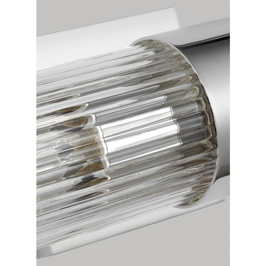 In the Geneva two light vanity fixture, slender, fluted shades form an elegant, dynamic silhouette that's balanced by a strong frame of Burnished Brass or Polished Nickel.