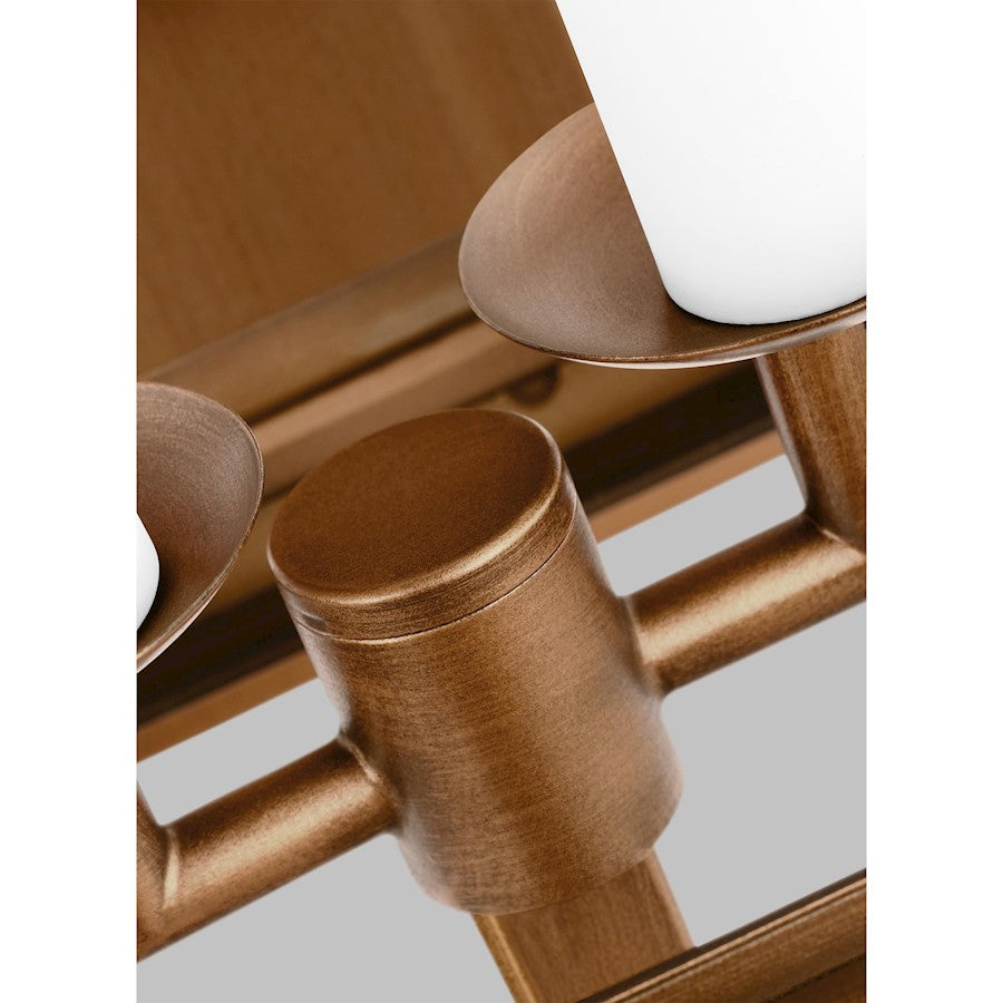 The Hyannis two light outdoor wall fixture in natural copper by Chapman & Myers has a classic copper lantern profile with top and bottom glass panels. Assembled with an overlapping metal frame which is accented by rivet details. Each light has a historically inspired spun metal chimney cap. The sconces are supported by a traditional bent metal architectural bracket.