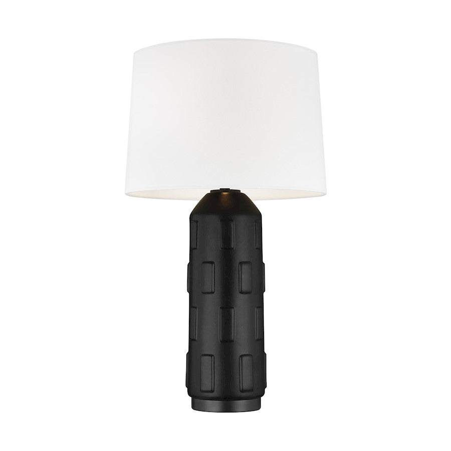 The Morada 28” table lamp features a simple, geometric textured pattern on its ceramic base, which comes in three colors. Topped with a white linen shade and complimented by Burnished Brass or Polished Nickel hardware.