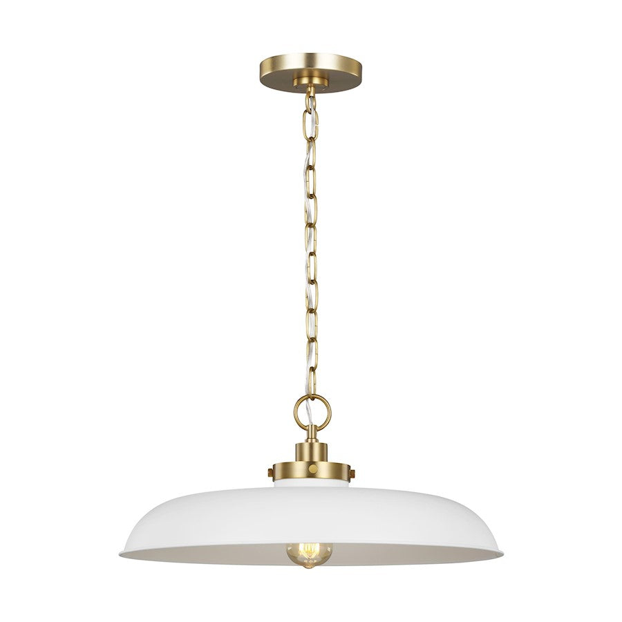 Inspired by various classic utility silhouettes - from factory lighting to barn sconces - capped by contrasting metal hardware. Each shade of the Wellfleet series by Chapman & Myers is available multiple sizes of 3 versatile profiles; either a flat farm dome, a traditional factory dome, or tapered cone. The shades are available with either a black or white finish and are paired with either a burnished brass or polished nickel collar, chain and canopy.