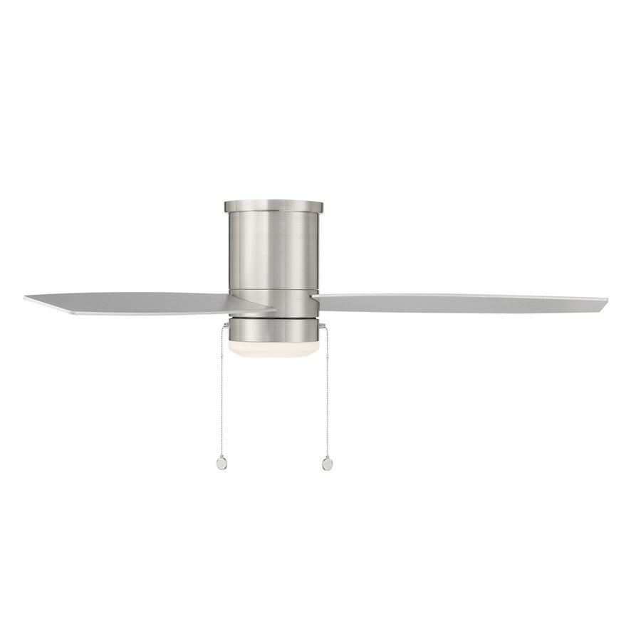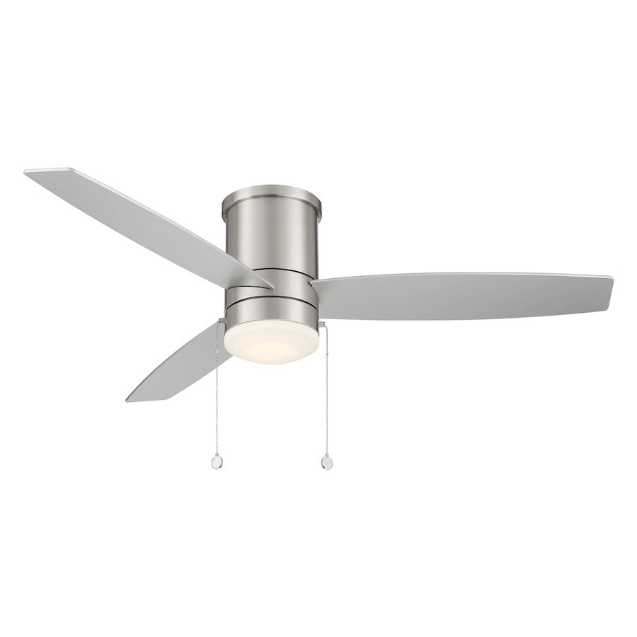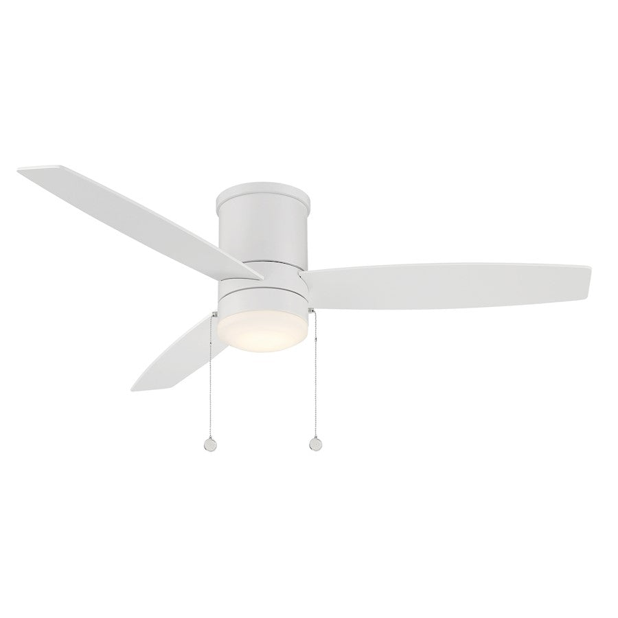 Atlantis from WAC offers a basic pull-chain fan with an optional wall control. Damp rated, these appealing high-value fans offer three speed options and can be reversed from the housings to pull hot air up during winter months. Enhance your interiors with the gently-curved shape of the elegant fan. Secured from above the fan housing supports the rounded steel housing for the fan’s three sleek blades, with three speeds to choose from. A damp-listed integrated LED luminaire at the center of the fixture evokes a wash of bright, ambient light, while the light and fan are separately controlled by prominent pull chains to ensure the ideal combination of light and breeze. Three handsome finishes featured in matte white, matte black and brushed nickel.