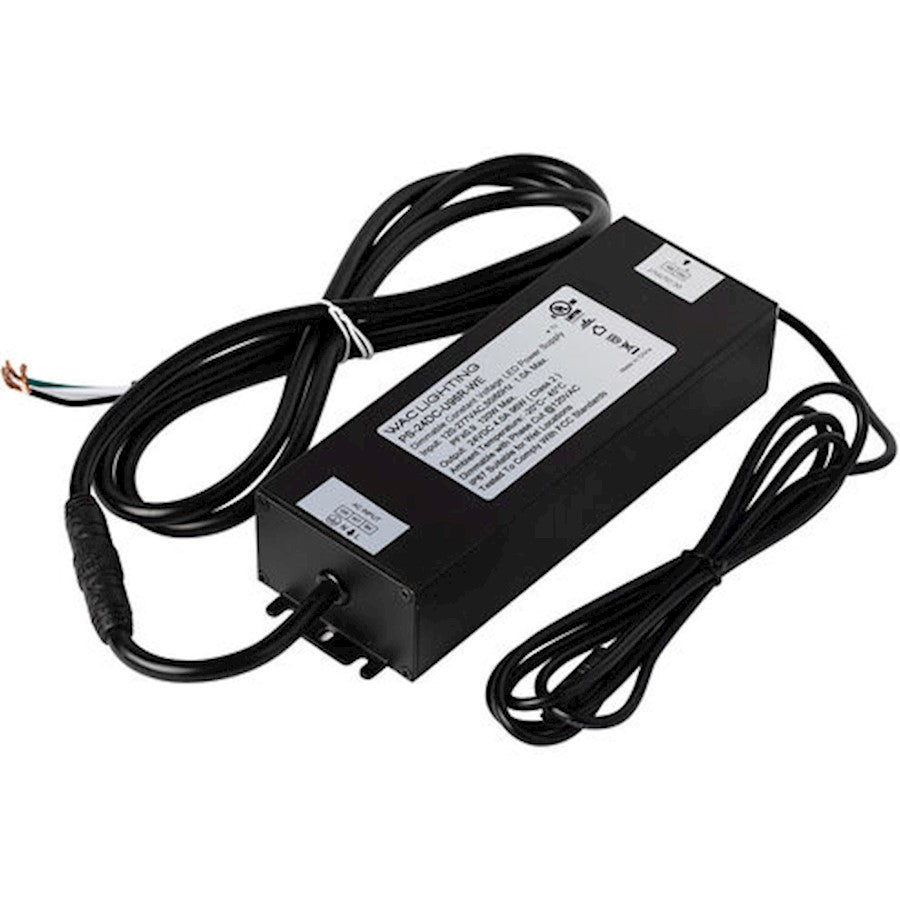 This class 2, UL & cUL wet location listed enclosed electronic power supply is used to power 24V outdoor tape light. There are two power supplies available for 24V outdoor tape light: SKU # PS-24DC-A96P-WE is for plug-and-play applications and can plug-in directly to a receptacle. SKU # PS-24DC-U96R-WE is for hardwired applications. Both power supplies have male-to-female connectors on the low-voltage strip light side that can be tightened to create a secure water-tight connection. Both power supplies are IP67 factory sealed for complete protection against ingress of dust and airborne particles with protection against water and liquids up to and including immersion in up to one meter of water for up to 30 minutes.