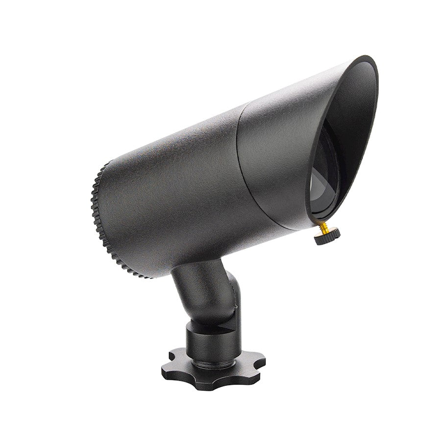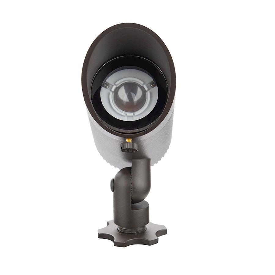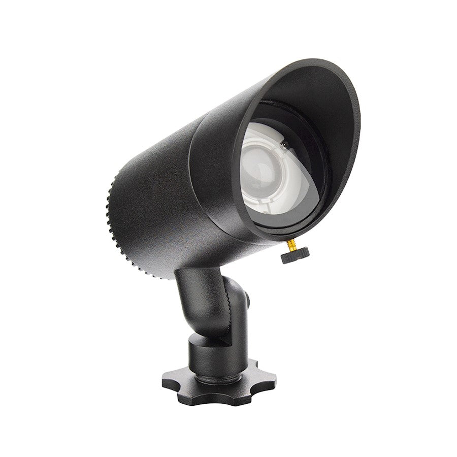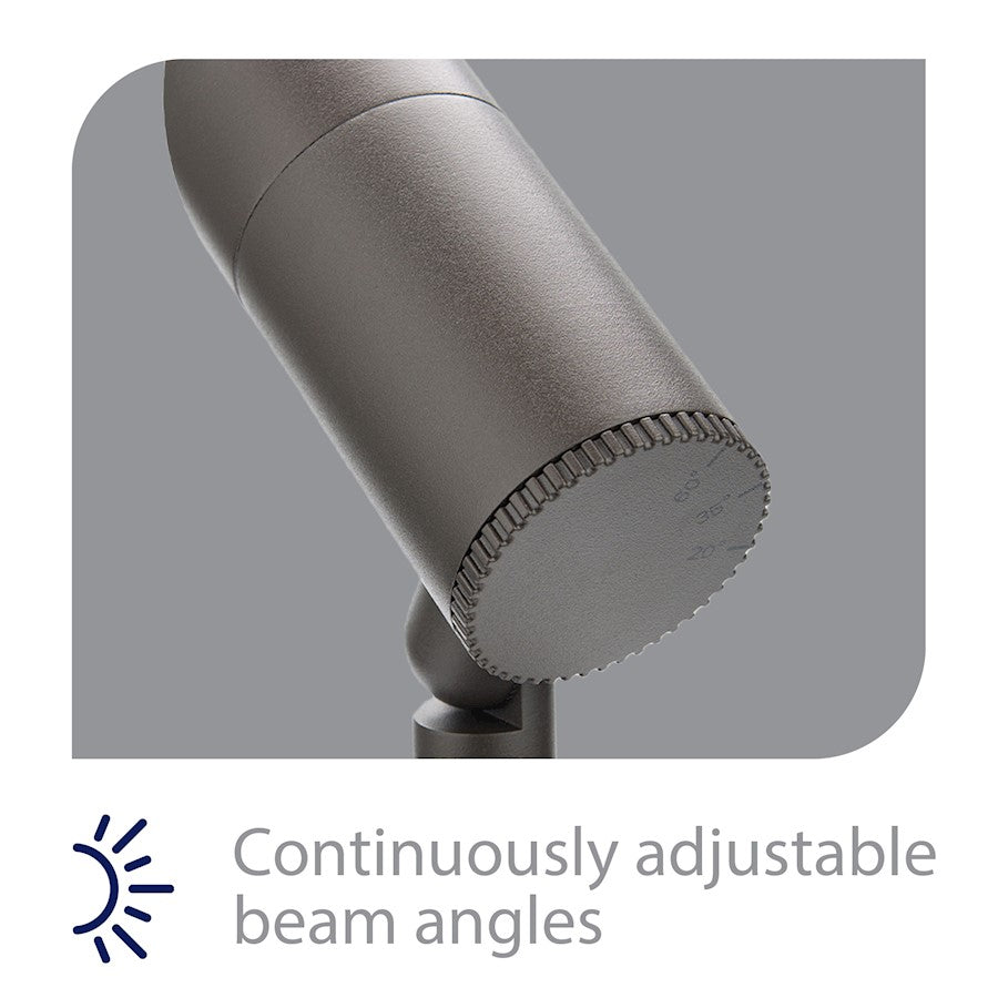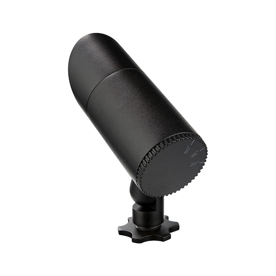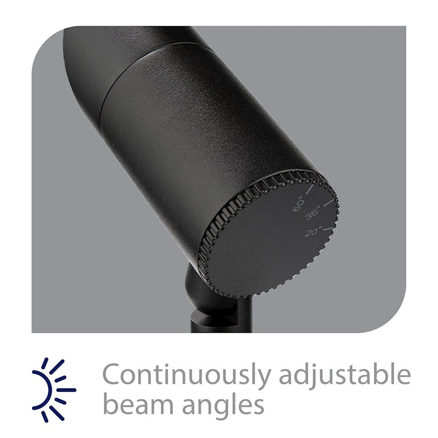 Interbeam is an integrated LED landscape accent light designed to perform for many years without the need for inefficient light bulbs found in traditional accent lights. This high-performance spotlight is compact and efficient. Features a dial at the back of the fixture that provides continuously adjustable beam angles from 20 degrees spot to 60 degrees flood to create the perfect beam angle for every light. Casted using a special k-alloy aluminum that is engineered to withstand the most challenging environments. This accent light is factory sealed and water tight with an IP66 rating for protection against high-pressure water jets and outdoor elements. A 9in mounting spike and 3ft lead wire with two gel filled direct burial wire nuts are included. Interbeam is easy-to-adjust with a lockable knuckle bracket that provides easy 360 degree rotation and 180 degree vertical axis adjustment. Interbeam is perfect for up lighting trees, buildings, structures, flags and more. Available in two options - Bright (3W - 5411) and Brighter (6W - 5311), order according to brightness needs.