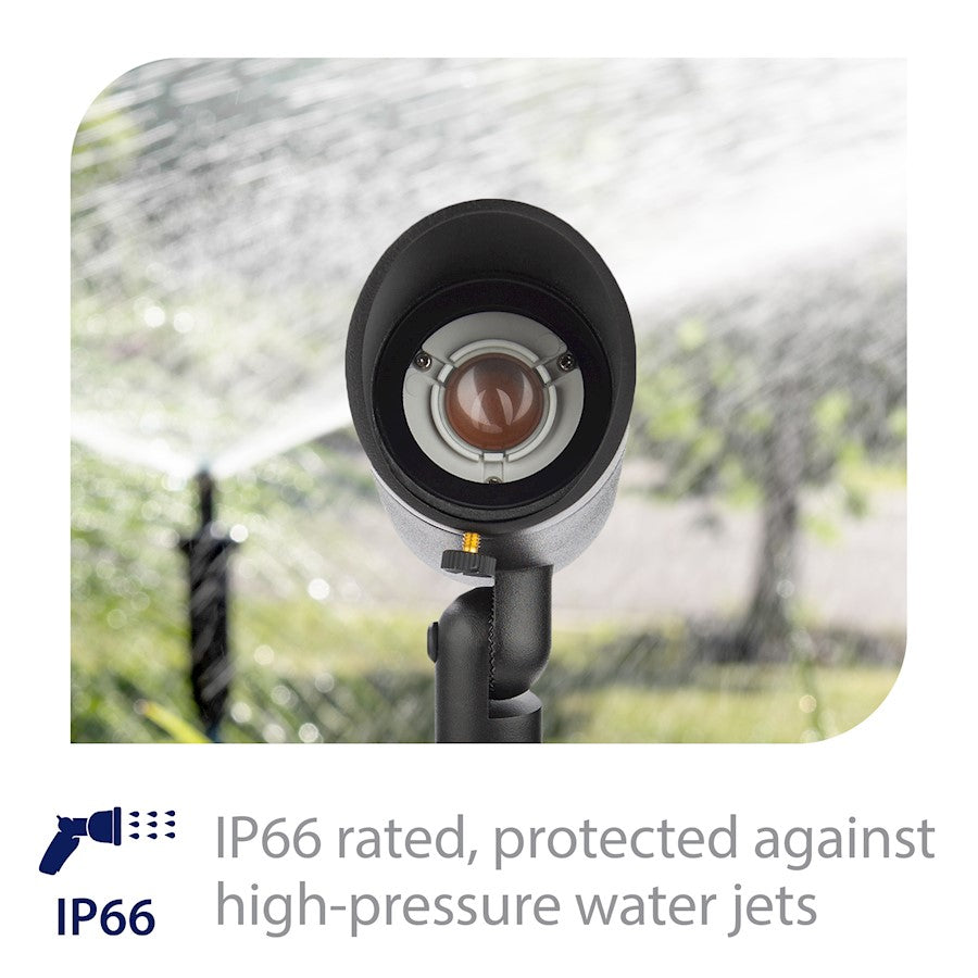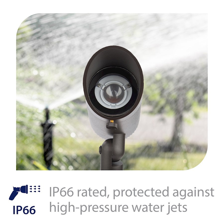 - Casted using a special k-alloy aluminum that is engineered to withstand the most challenging environments over time. This accent light is factory sealed and water tight with an IP66 rating that provides protection against high-pressure water jets and outdoor elements.