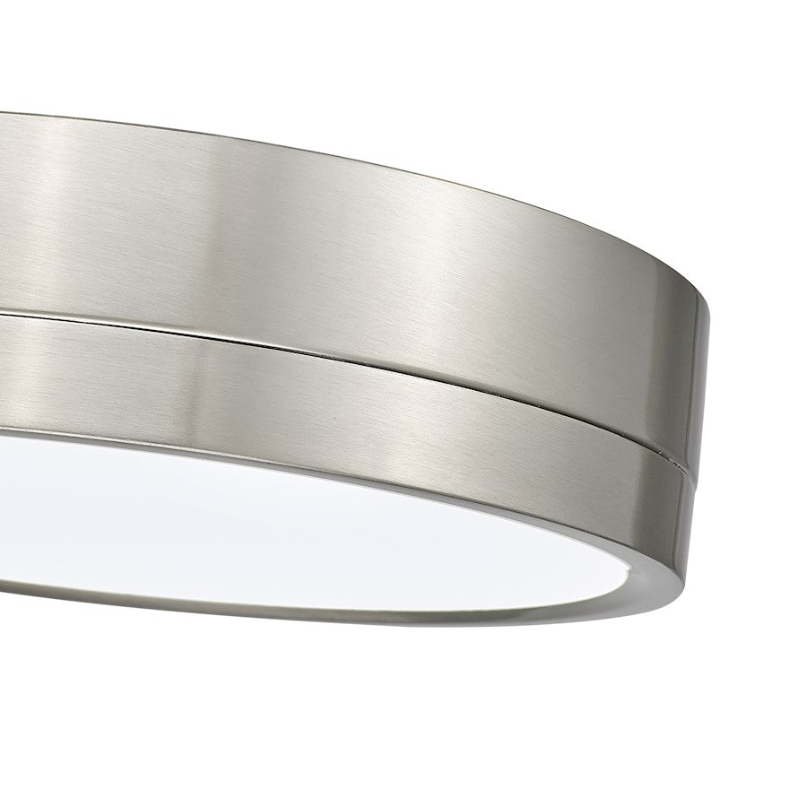 Clean contemporary attitude is sleek and solid as this steel-constructed one-light flush mount ceiling light adapts to surrounding décor. Pleasing ambient lighting is a bonus to this fixture with a brushed nickel finish steel frame and a frosted acrylic diffuser, as dimmable LEDs offer options for white color levels.