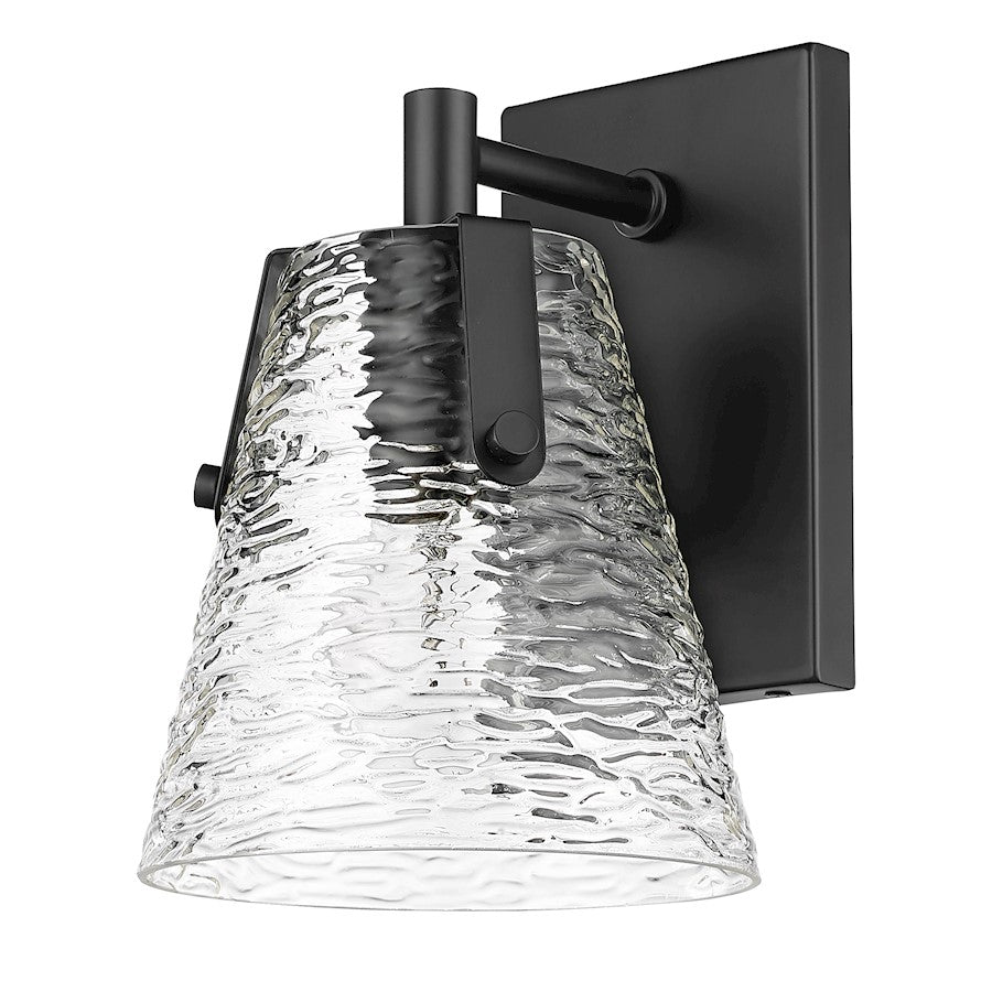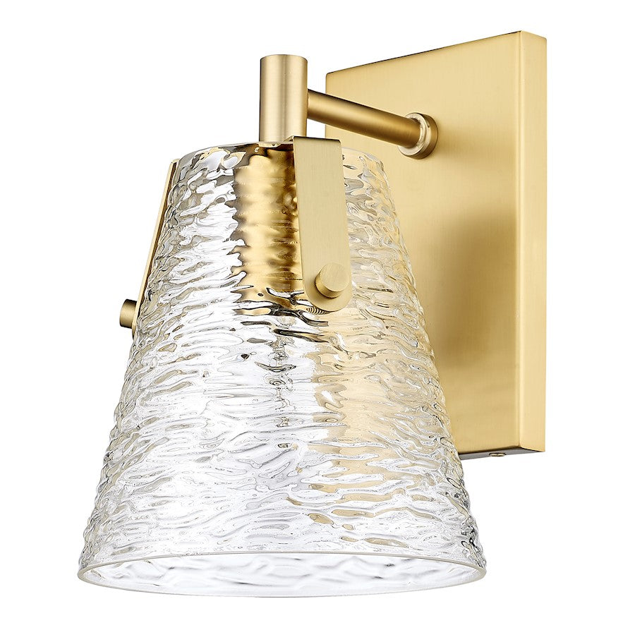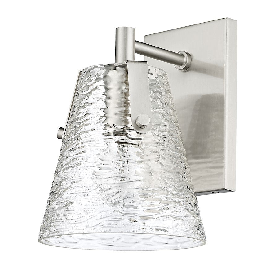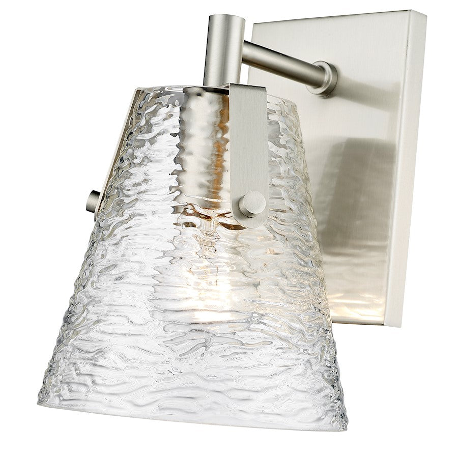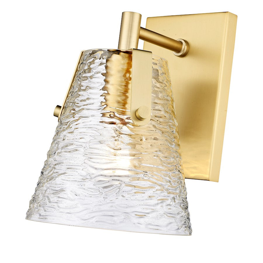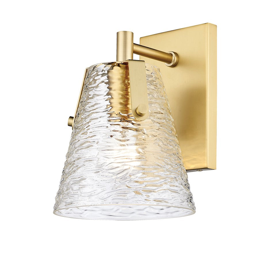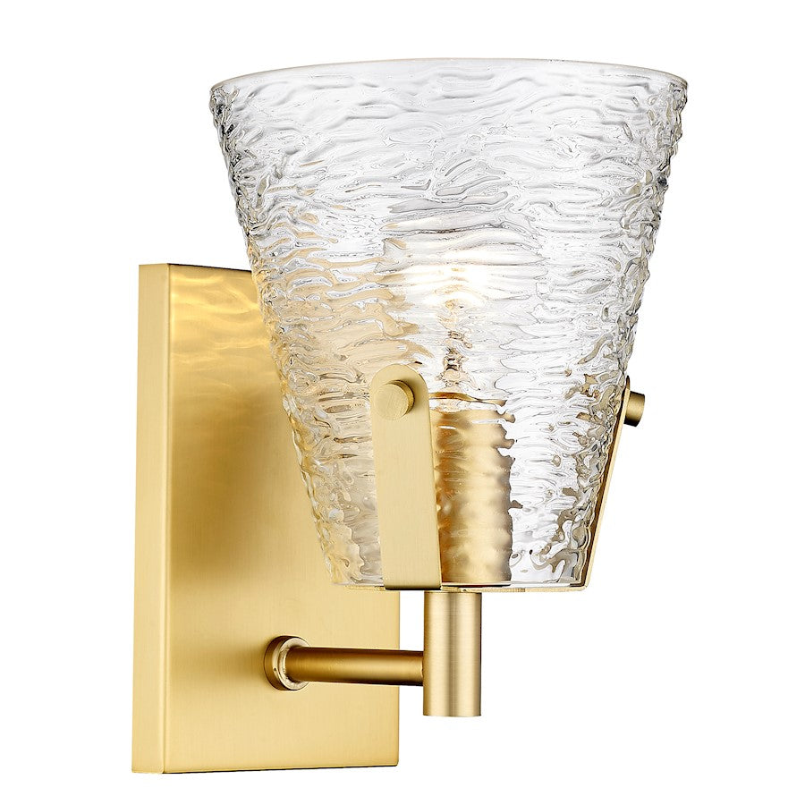 Soothing, exotic ambiance brings an ethereal sophistication to a contemporary bath space with this modern wall sconce from the Analia collection. Highlight a compact vanity or wall with a chic fixture featuring a minimalist-inspired brushed nickel or chrome or matte black or gold finish steel frame and decadent conical shade crafted of hand-blown textured glass.