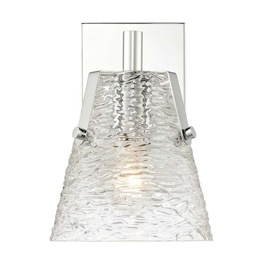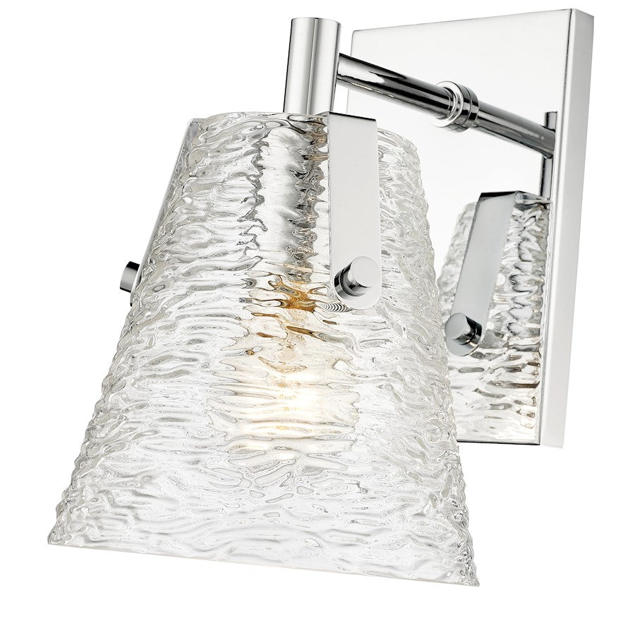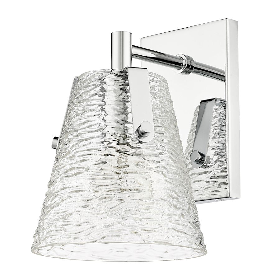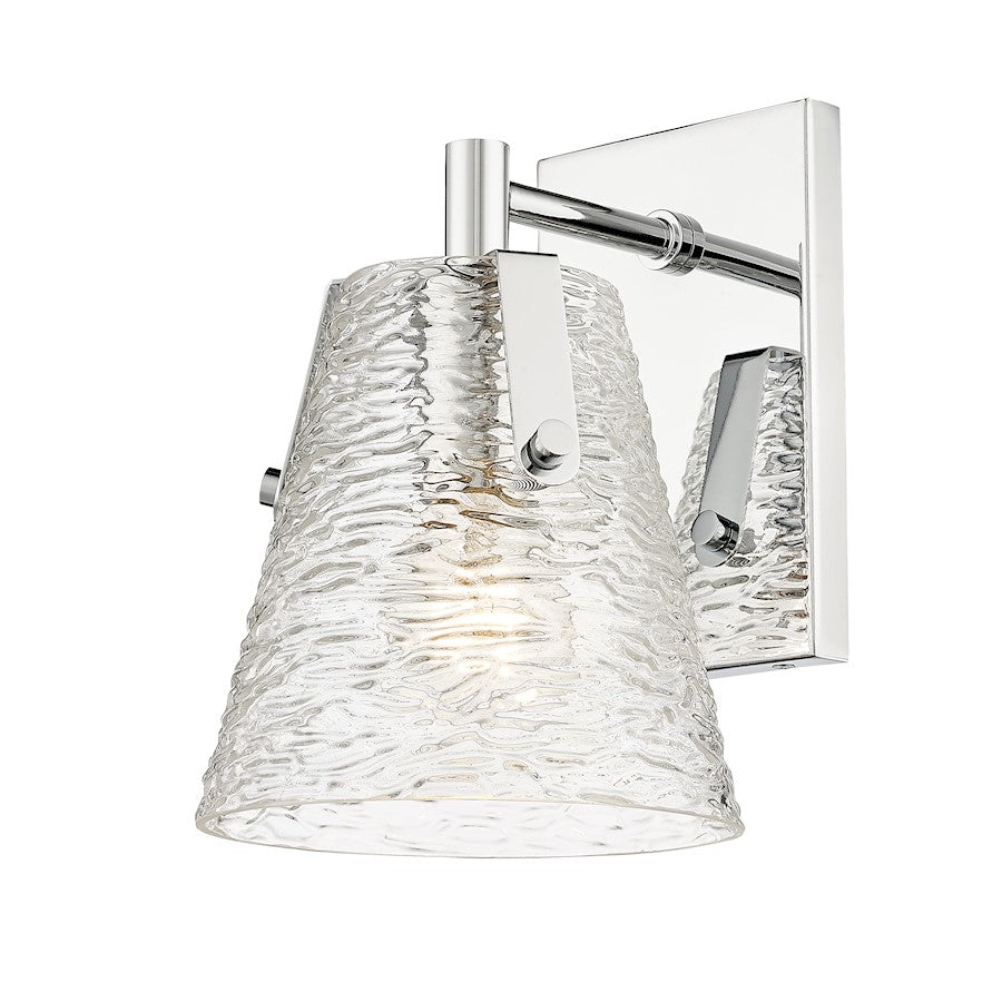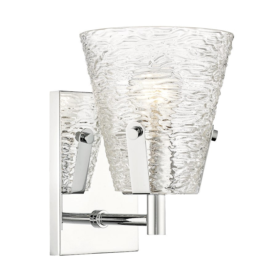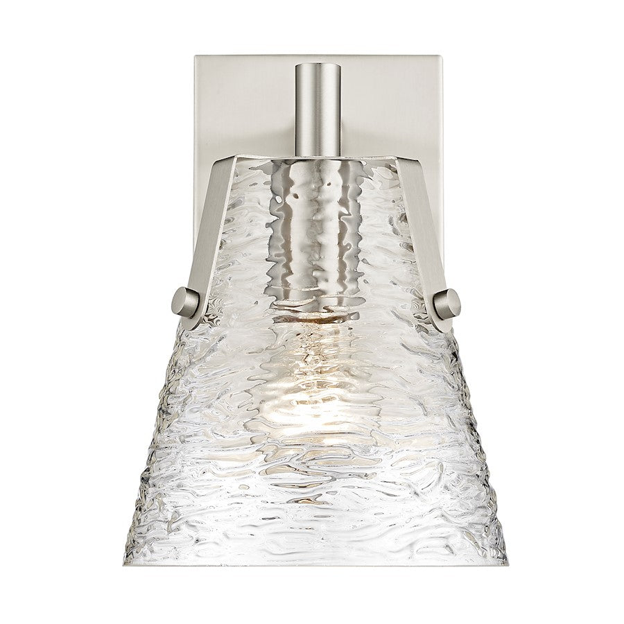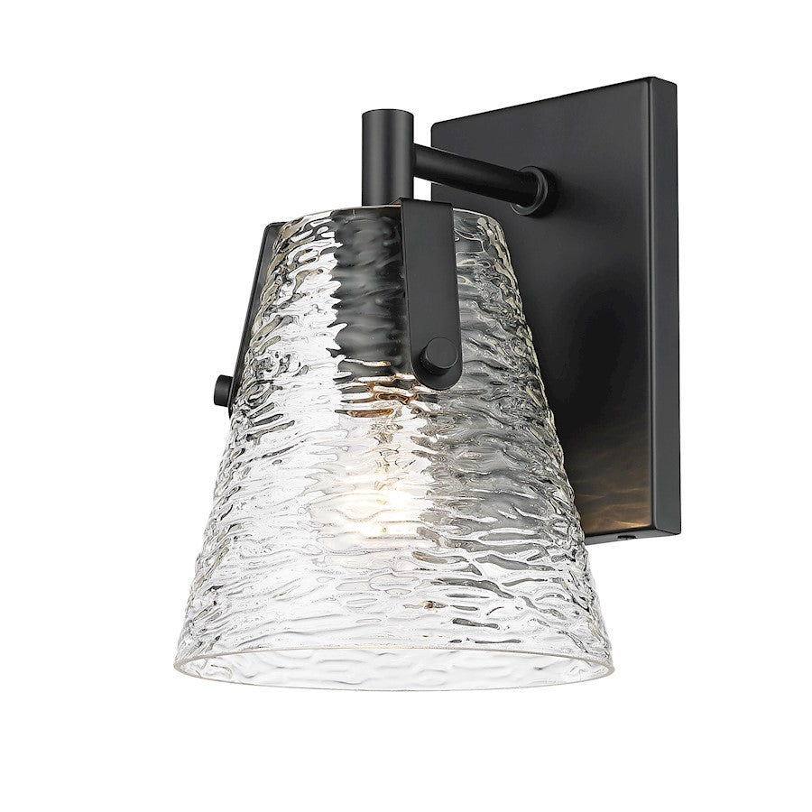 Soothing, exotic ambiance brings an ethereal sophistication to a contemporary bath space with this modern wall sconce from the Analia collection. Highlight a compact vanity or wall with a chic fixture featuring a minimalist-inspired brushed nickel or chrome or matte black or gold finish steel frame and decadent conical shade crafted of hand-blown textured glass.