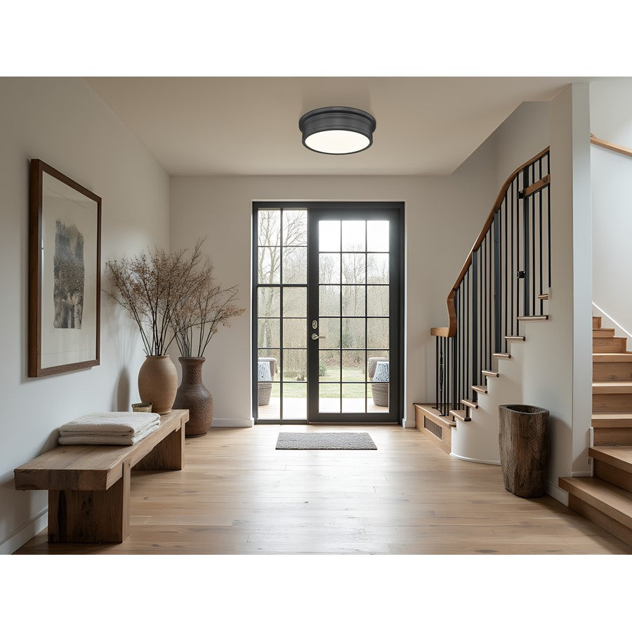Dark and refined, this matte black transitional LED flush mount ceiling light adds a contemporary edge to traditional trim, giving the ceiling a thoughtfully updated presence. Its ample glow is strong enough to handle larger entries, playrooms, or open hallways, so the entire area feels bright and usable throughout the day.
