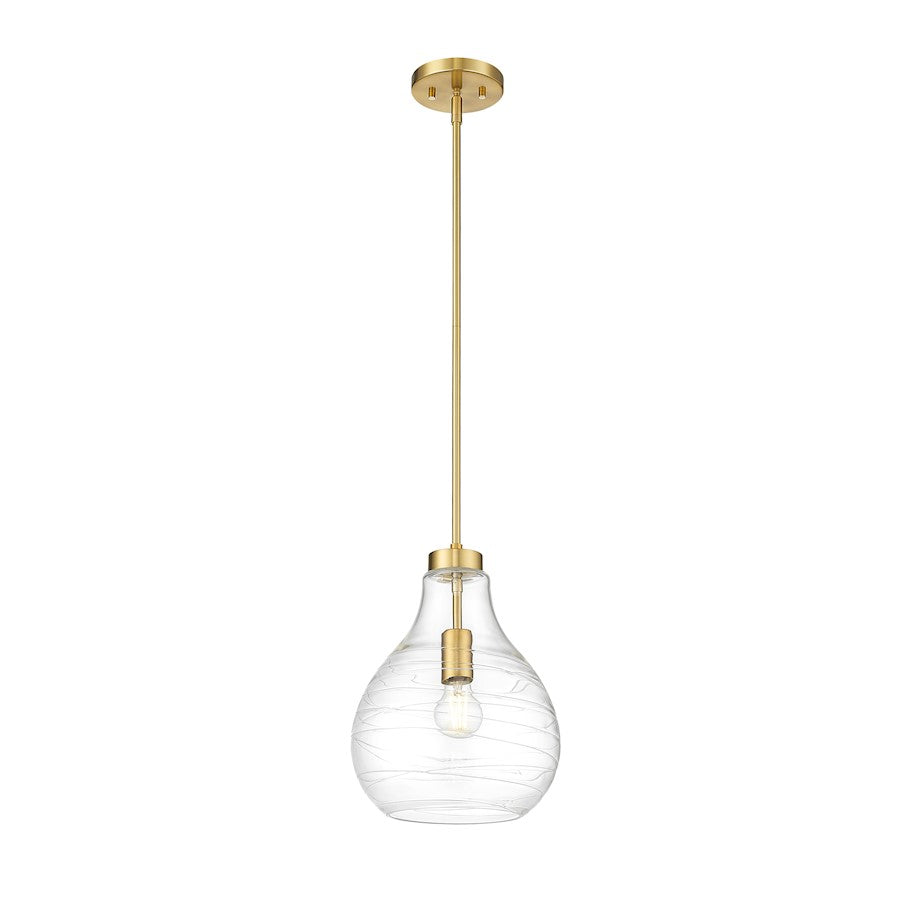 Artisanal ribboning highlights curvy clear glass to create a statement-making look and feel for a modern one-light pendant. Rich in modern gold, it boasts a crisp, clean silhouette that brims with character as the dimensional shade refracts light to reduce glare and create an inviting ambiance in your home.