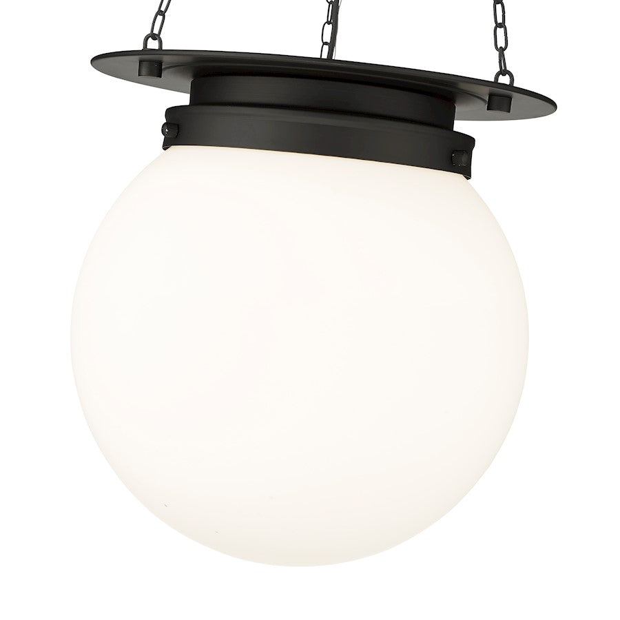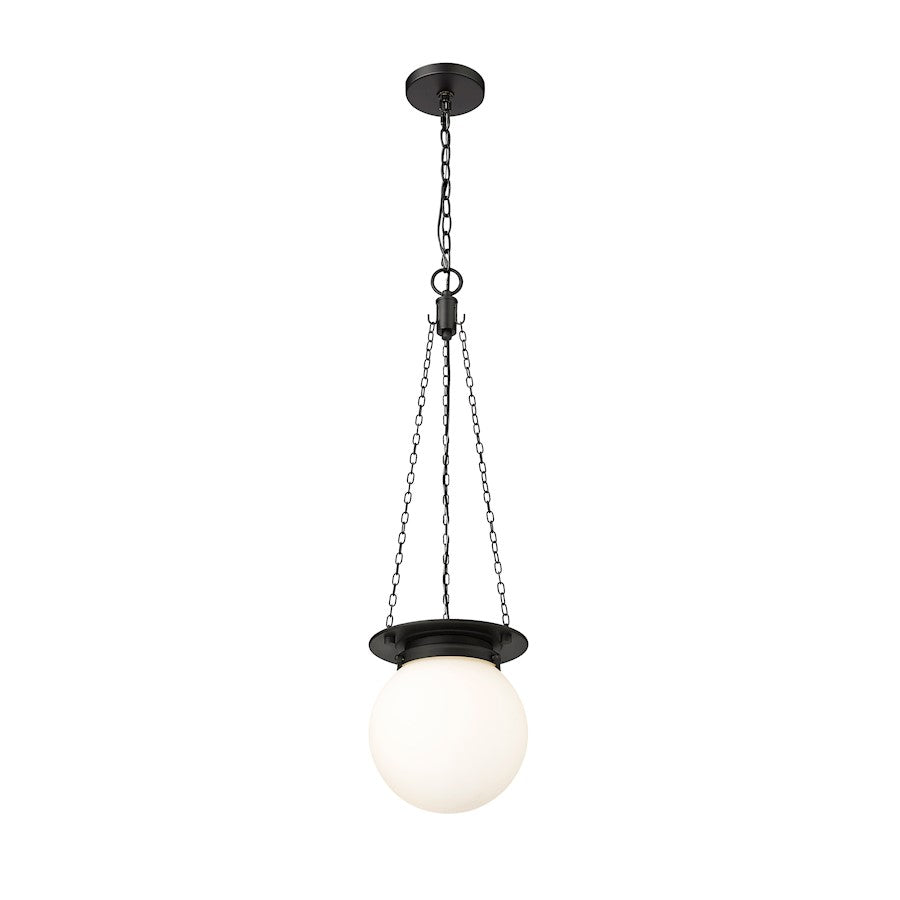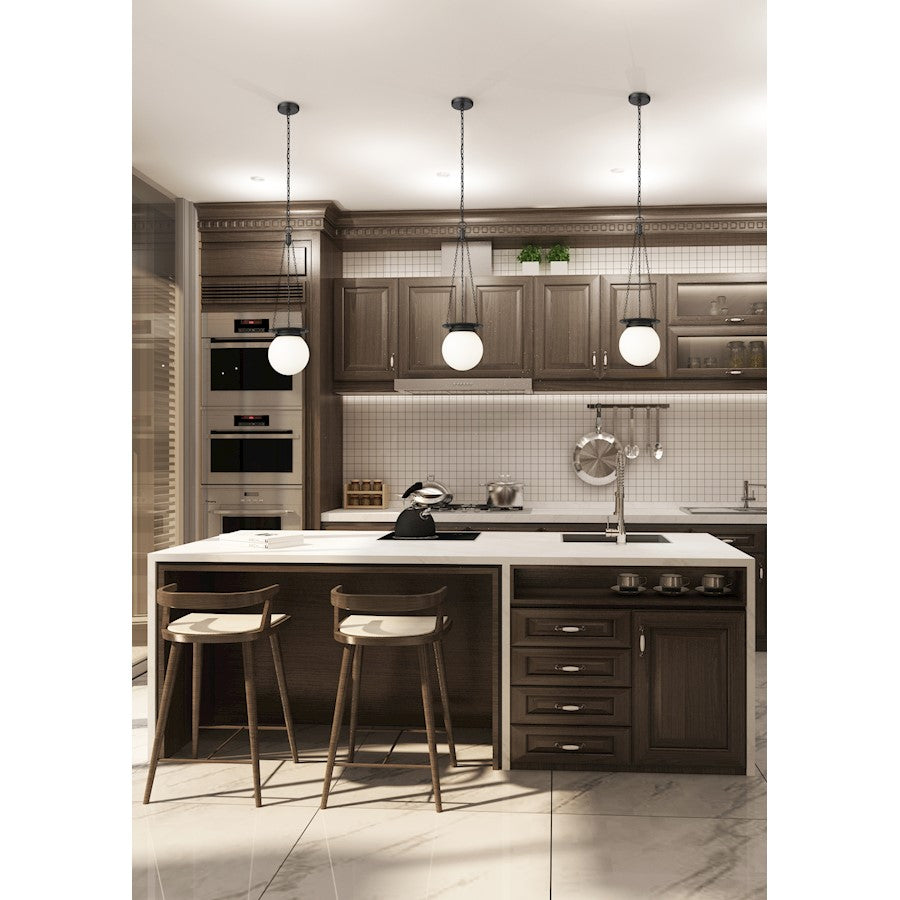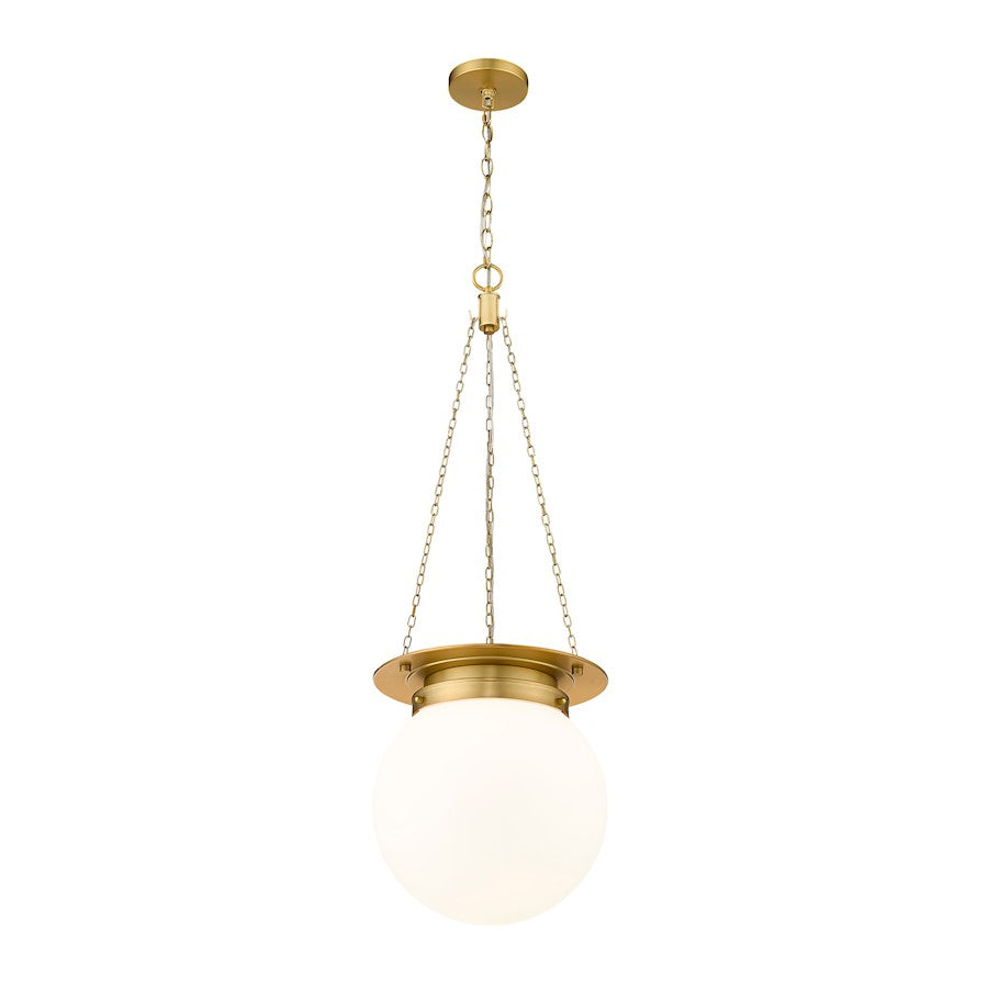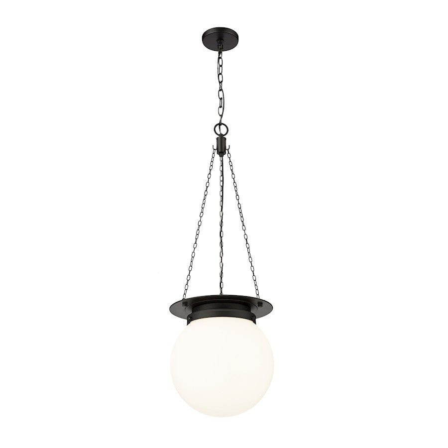 - The Calhoun lantern pendant fuses classic elements of Mid-Century Modern and Schoolhouse looks to create a fresh contemporary style for today’s interiors. The milk glass globe takes center stage, surrounded by a cuff of steel distinguished with raised architectural grommets. A triple chain evokes a rich, vintage look, along with fine details such as the matching ceiling canopy. This distinctive pendant will set a modern tone in the entry or hang in multiples over a kitchen island or bar. Available in Heritage Brass, and Matte Black.